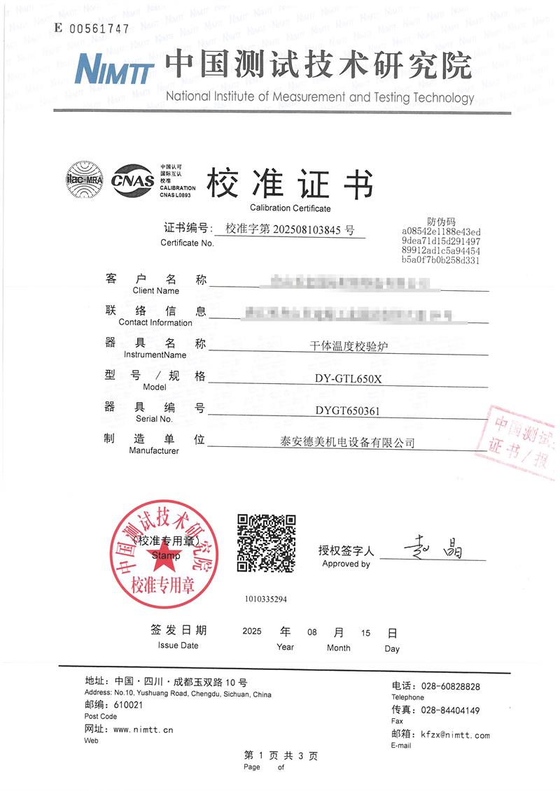 | 上一條:高精度低溫黑體(-10-100℃)校準(zhǔn)證書 | 下一條:廉金屬熱電偶檢定爐-校準(zhǔn)證書 |