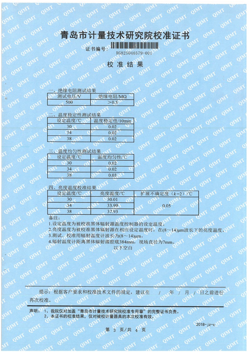 額溫計黑體空腔校準證書 2025-12-18 本文被閱讀 1737 次