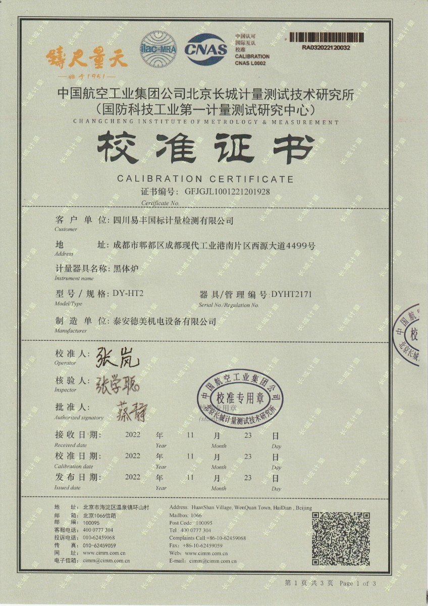 四川易豐國(guó)標(biāo)計(jì)量檢測(cè)有限公司 黑體爐 2023-1-3 本文被閱讀 12944 次