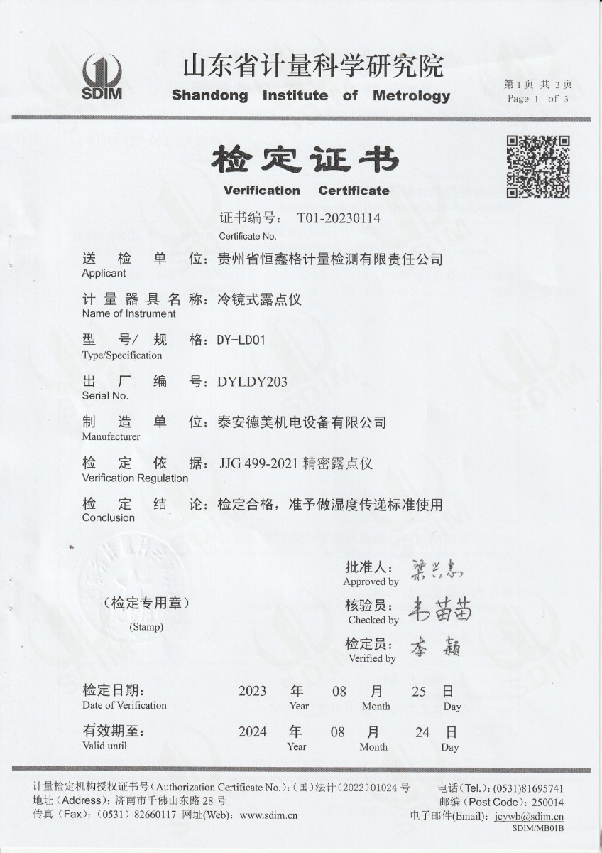 | 上一條:貴州省恒鑫格計(jì)量檢測有限責(zé)任公司-冷鏡式露點(diǎn)儀校準(zhǔn)證書 | 下一條:廉金屬熱電偶檢定爐-校準(zhǔn)證書 |