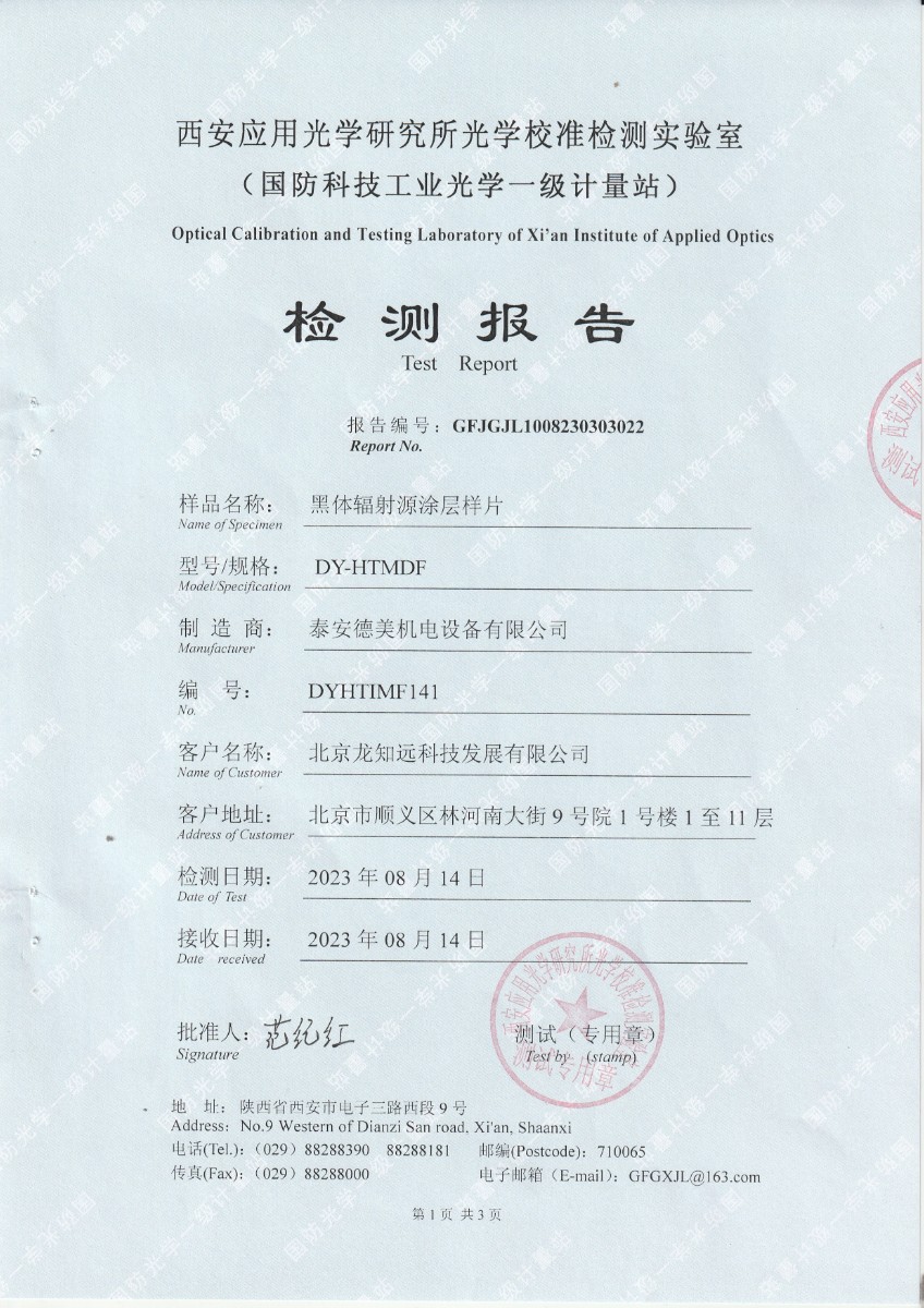 | 上一條:北京龍知遠(yuǎn)科技發(fā)展有限公司-黑體輻射源涂層樣片DYHT1MF140檢測報(bào)告 | 下一條:廉金屬熱電偶檢定爐-校準(zhǔn)證書 |