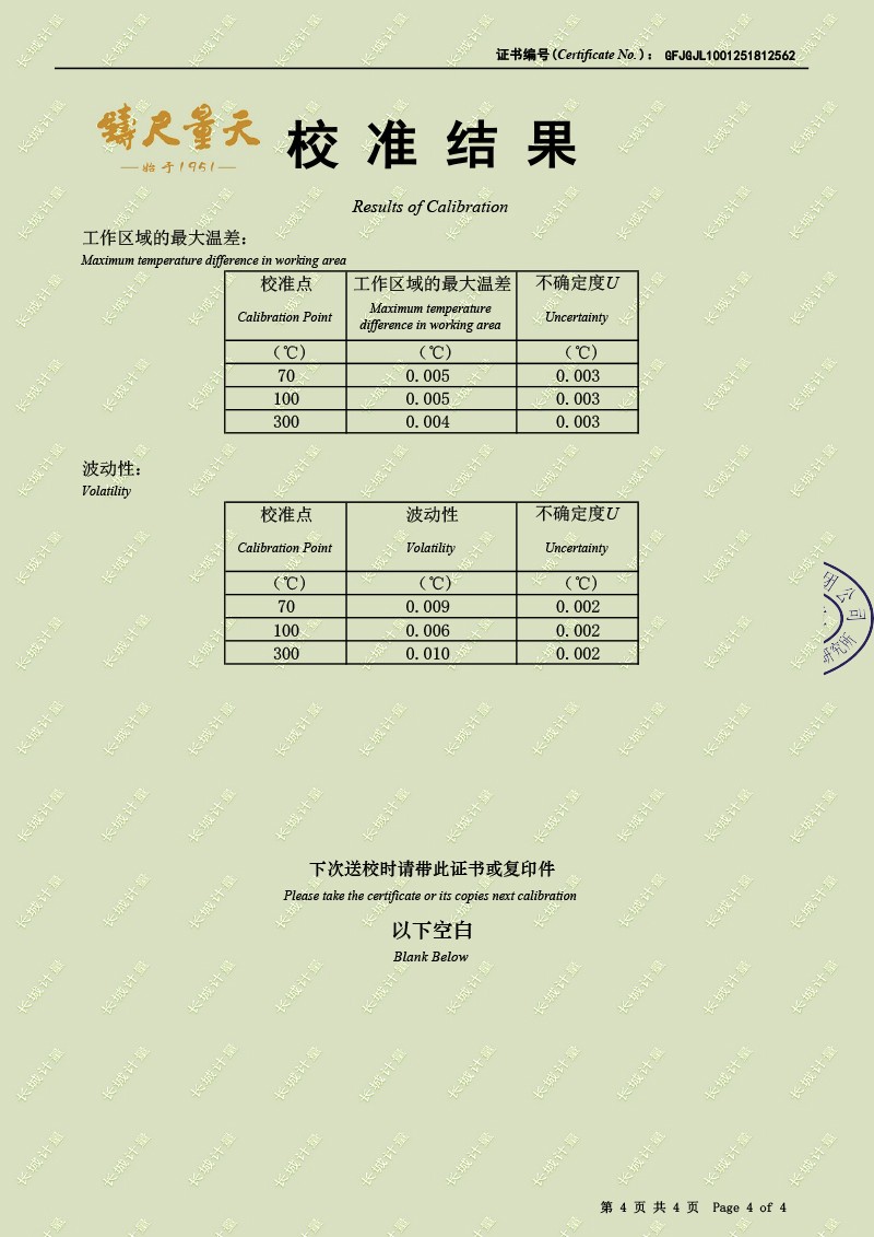 | 上一條:高精度制冷恒溫(-40-100℃)校準(zhǔn)證書 | 下一條:廉金屬熱電偶檢定爐-校準(zhǔn)證書 |