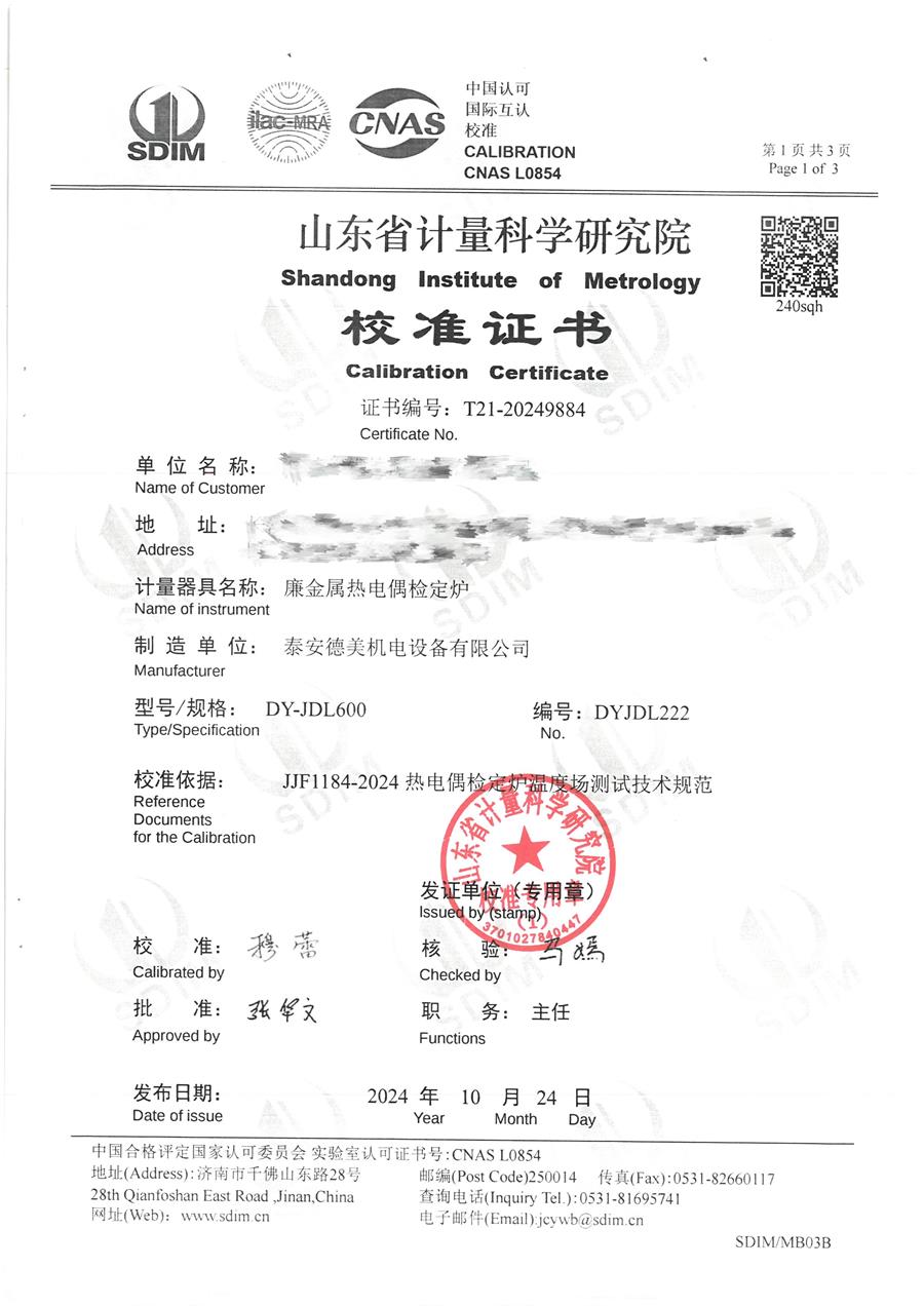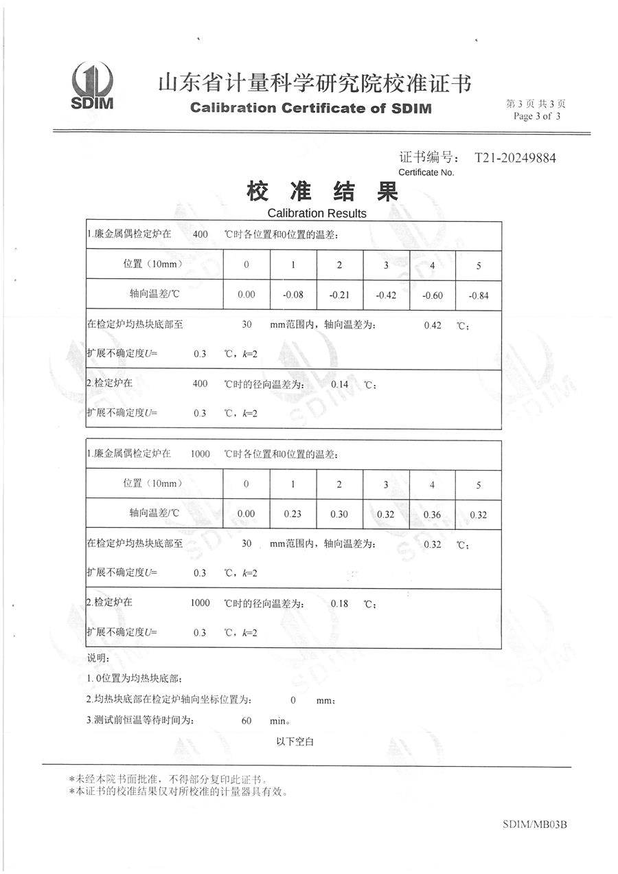 廉金屬熱電偶檢定爐(300-1200℃)校準證書 2024-11-2 本文被閱讀 7301 次