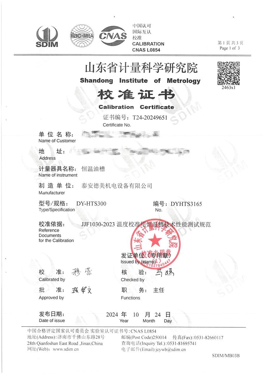 | 上一條:制冷恒溫槽(-30-95℃)校準(zhǔn)證書(shū) | 下一條:廉金屬熱電偶檢定爐-校準(zhǔn)證書(shū) |