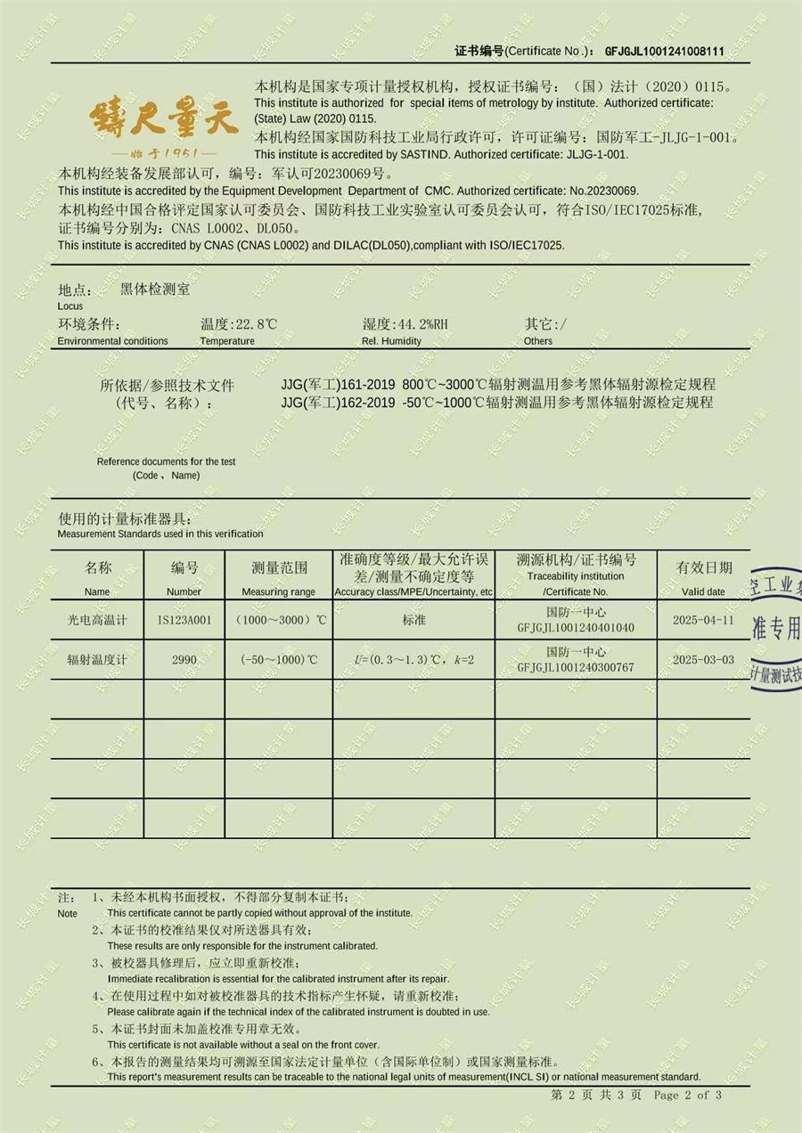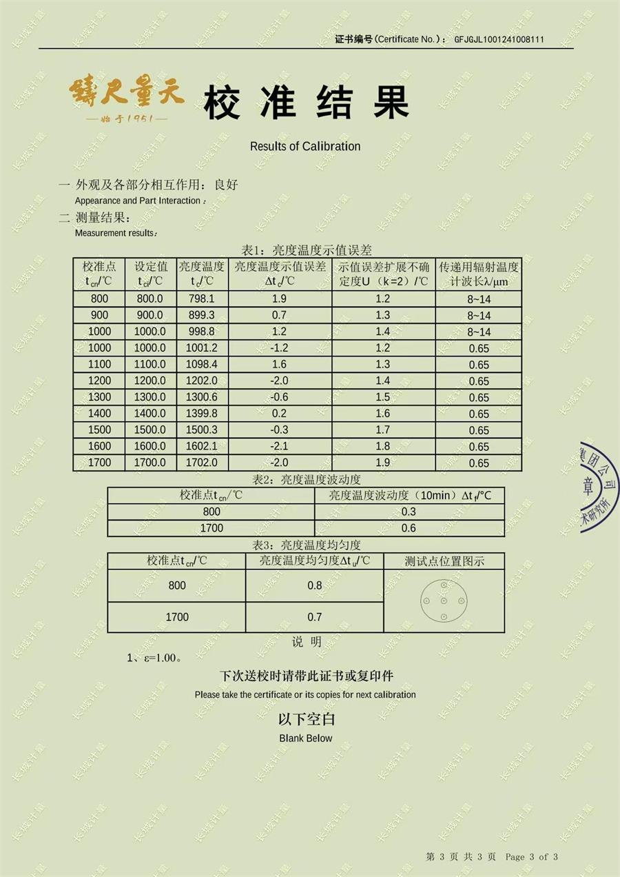 高溫黑體爐(800-1700℃)校準(zhǔn)證書