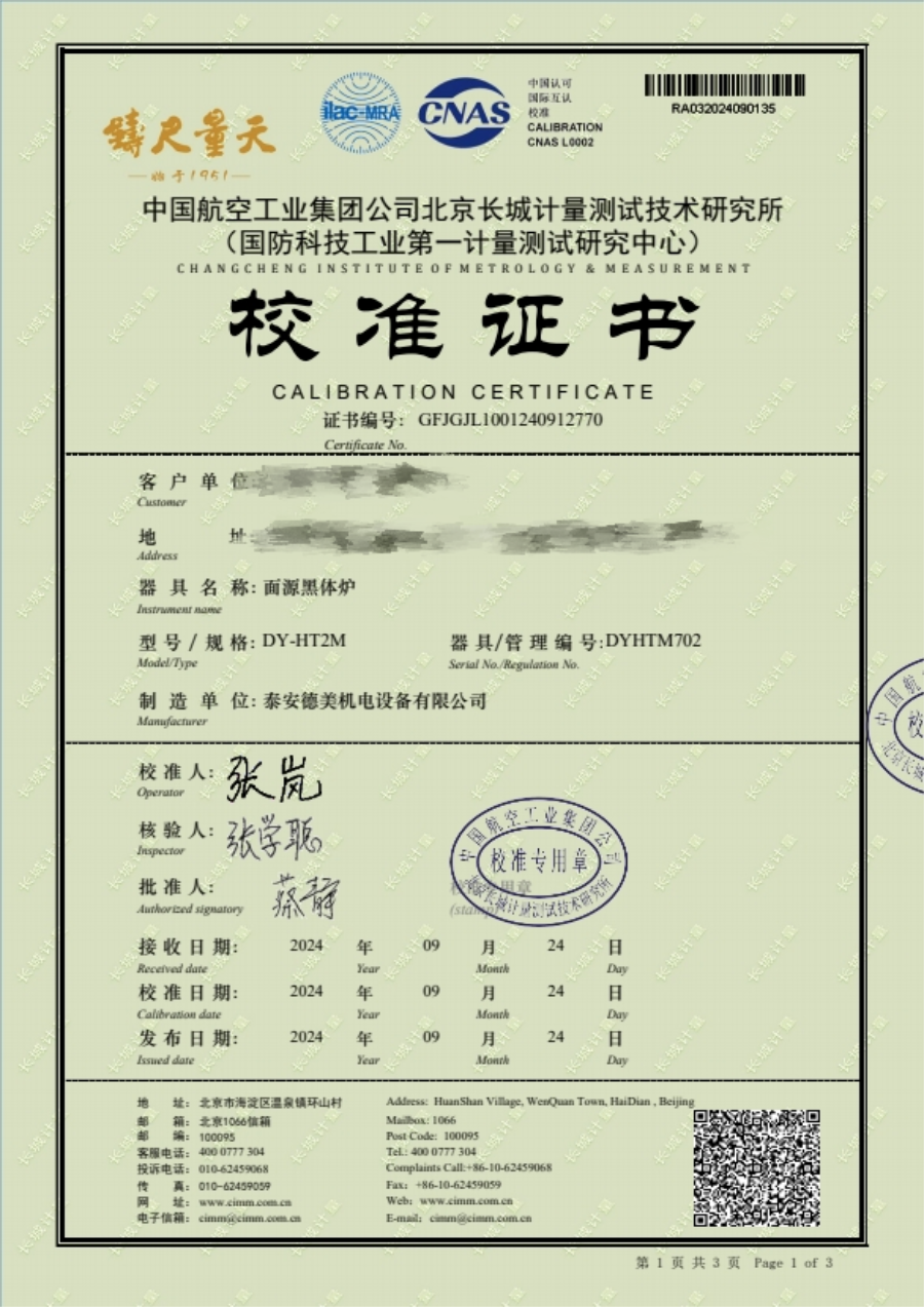 面源黑體爐校準(zhǔn)證書(shū) 2024-11-27 本文被閱讀 8220 次