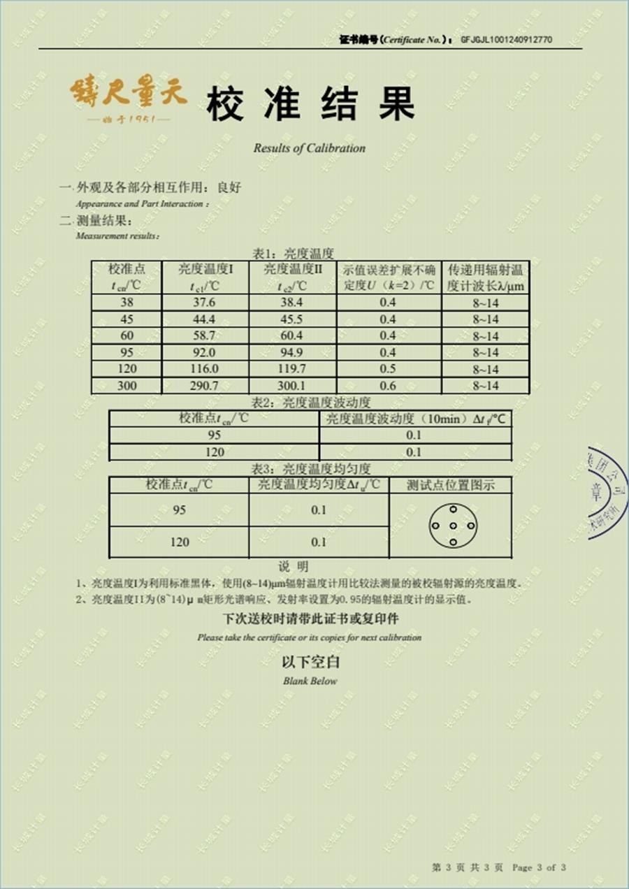 面源黑體爐校準(zhǔn)證書(shū)