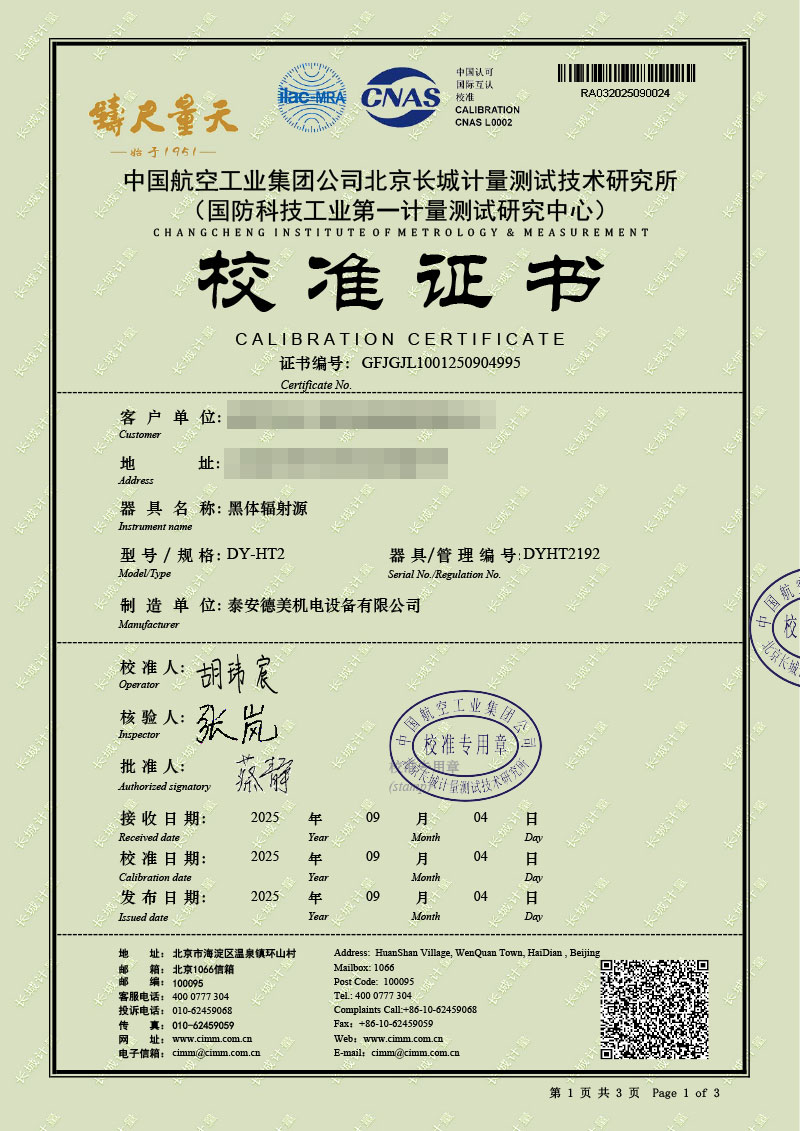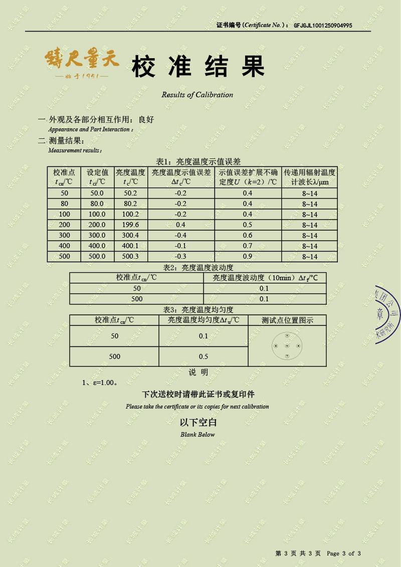 | 上一條:黑體輻射源(-15-80℃)校準(zhǔn)證書(shū) | 下一條:廉金屬熱電偶檢定爐-校準(zhǔn)證書(shū) |