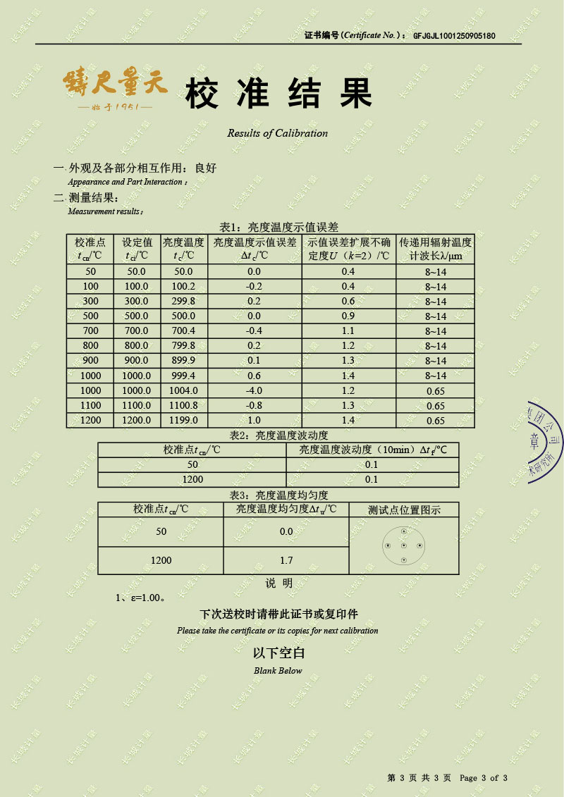 黑體輻射源(50-1200℃)校準(zhǔn)證書(shū) 2025-9-22 本文被閱讀 2318 次
