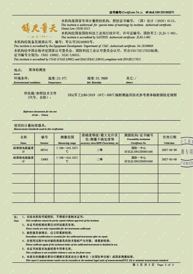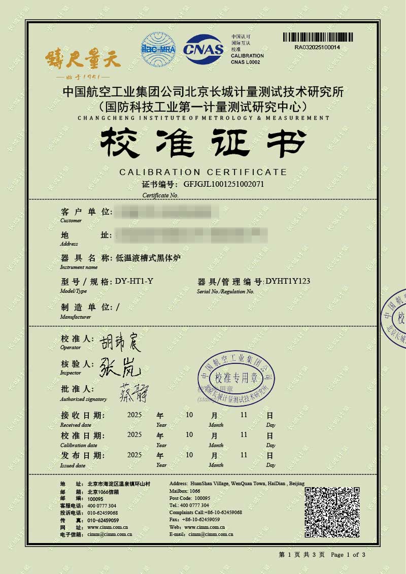 低溫液槽式黑體爐(-40-100℃)校準(zhǔn)證書 2025-10-30 本文被閱讀 1890 次