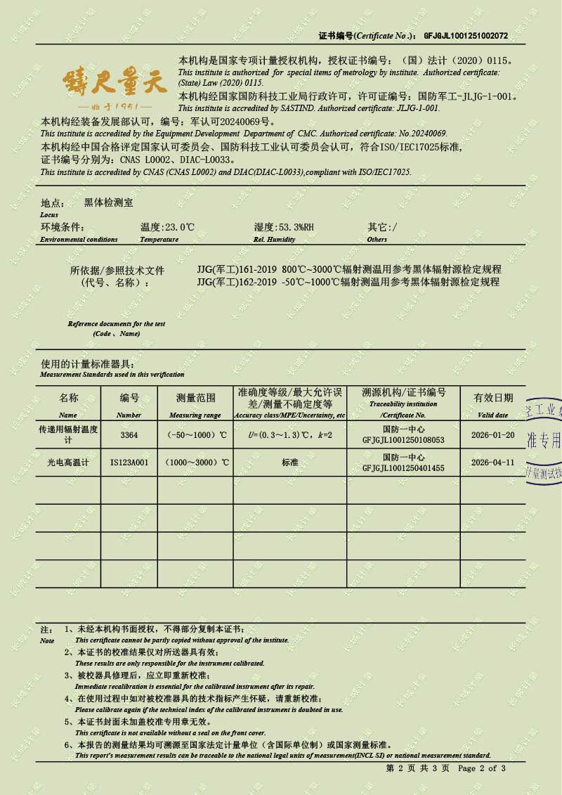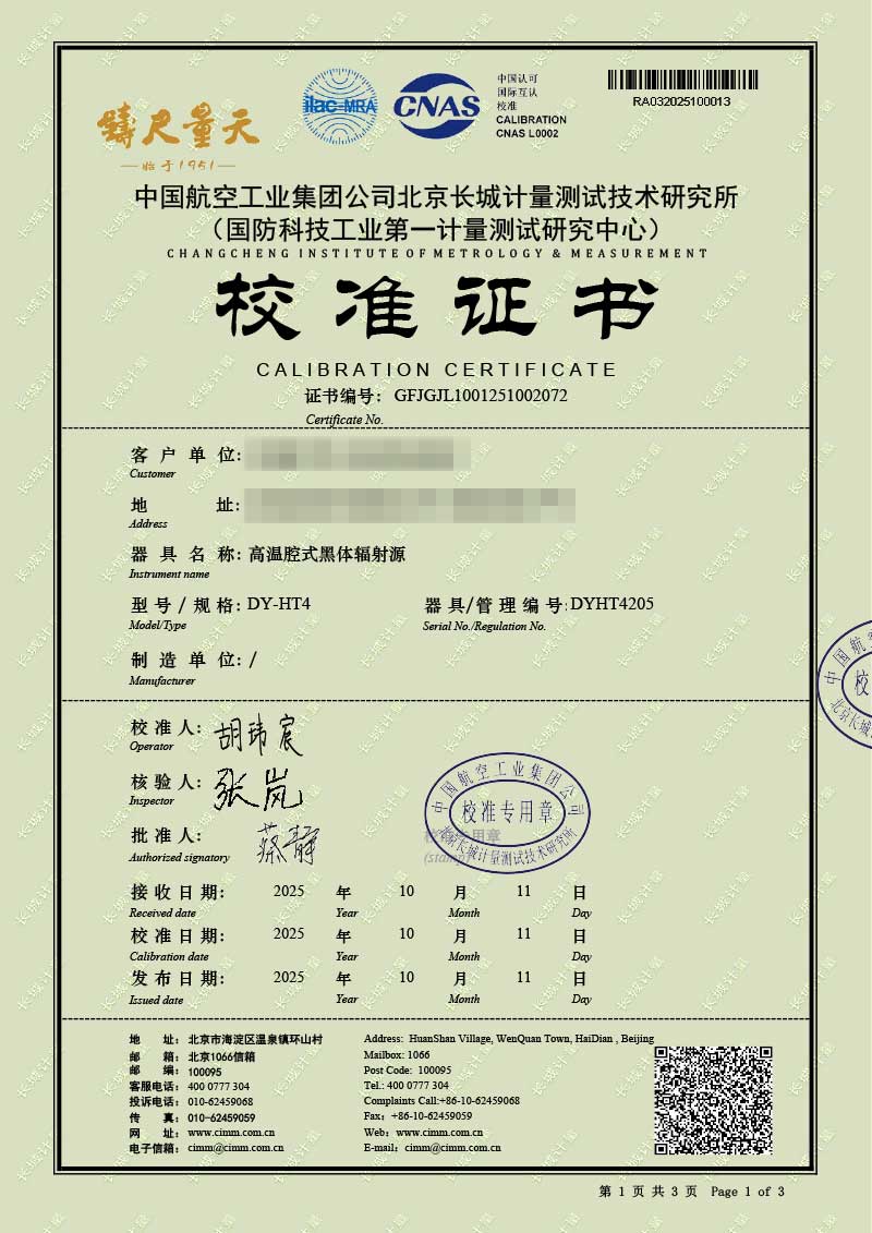 高溫腔式黑體輻射源(700-1600℃)校準(zhǔn)證書 2025-10-30 本文被閱讀 1870 次