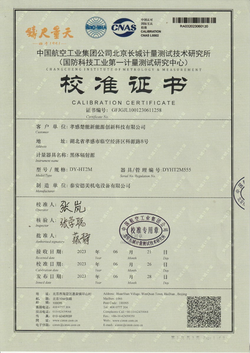 孝感楚能新能源創(chuàng)新科技有限公司-黑體輻射源 2023-7-17 本文被閱讀 12347 次