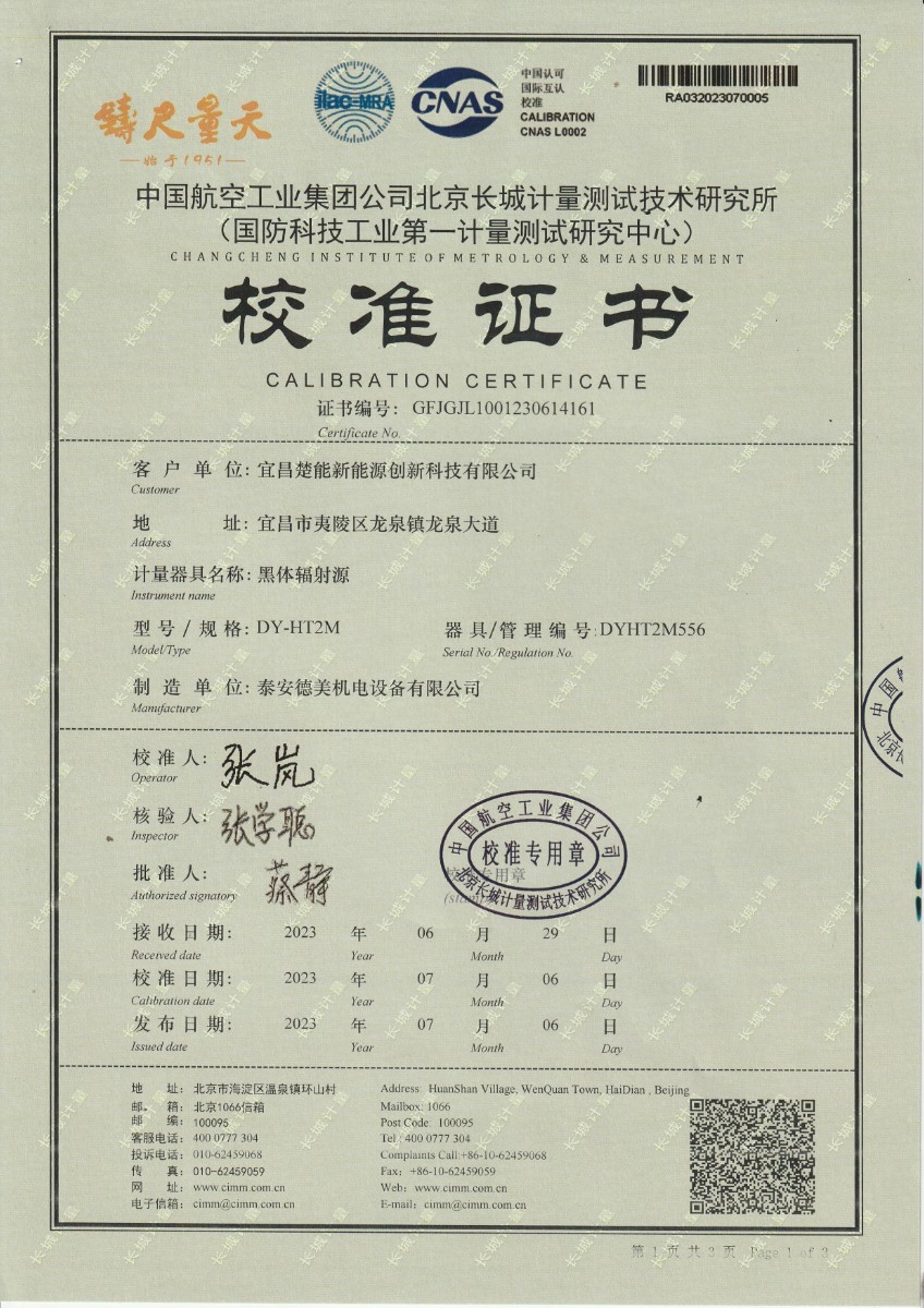 | 上一條:孝感楚能新能源創(chuàng)新科技有限公司-黑體輻射源 | 下一條:廉金屬熱電偶檢定爐-校準(zhǔn)證書 |