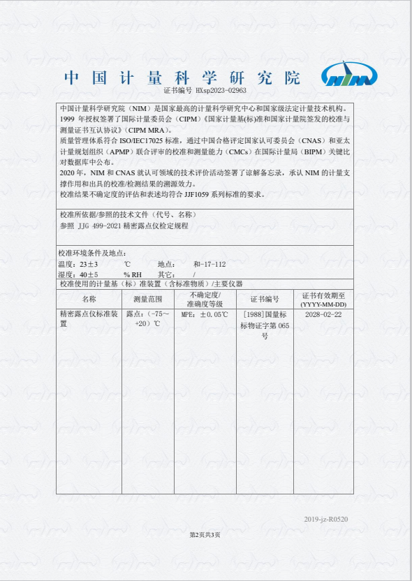 露點(diǎn)儀校準(zhǔn)證書 2023-11-9 本文被閱讀 11006 次