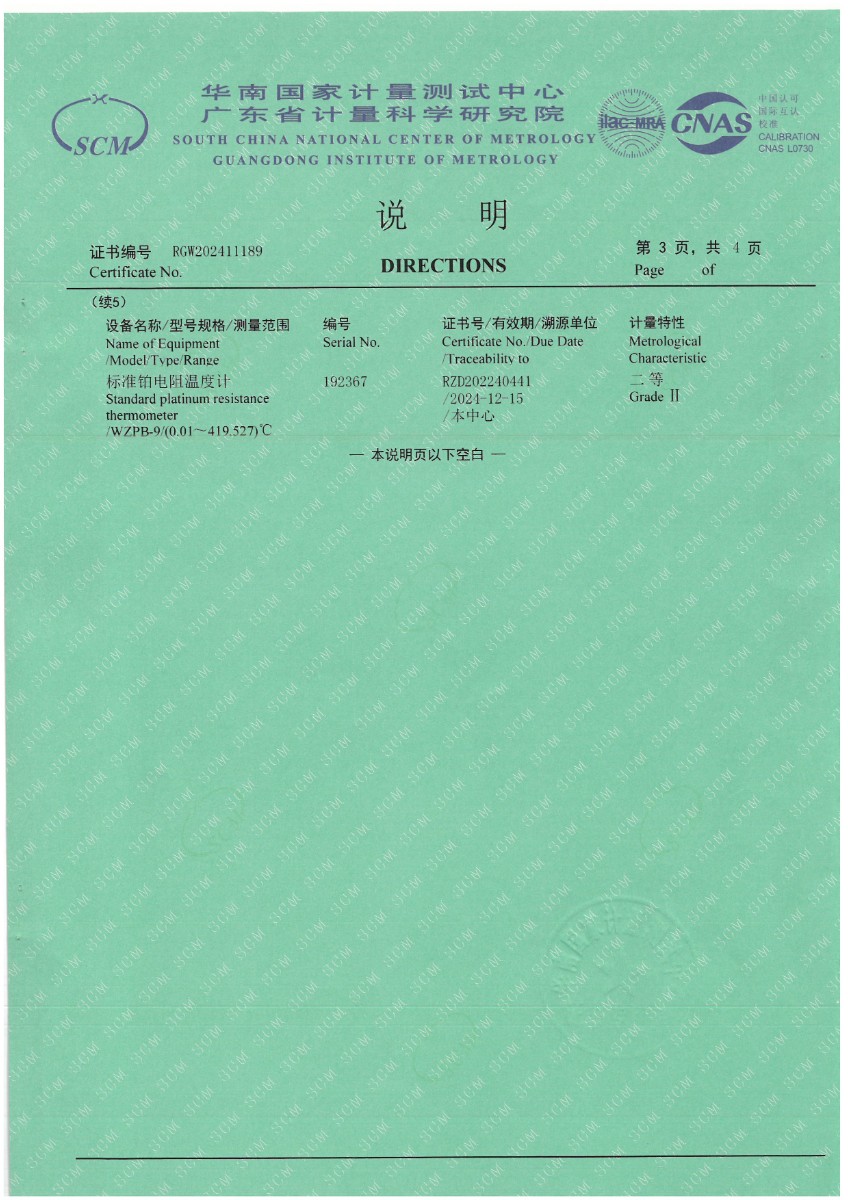 | 上一條:體溫計(jì)專用黑體恒溫槽(-20~100℃)校準(zhǔn)證書 | 下一條:廉金屬熱電偶檢定爐-校準(zhǔn)證書 |