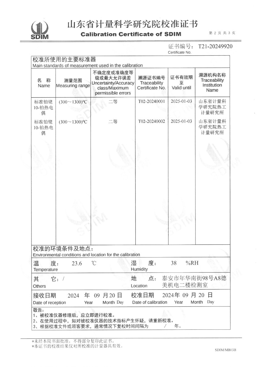 貴金屬熱電偶檢定爐(300~1000℃)校準(zhǔn)證書 2024-9-24 本文被閱讀 7456 次