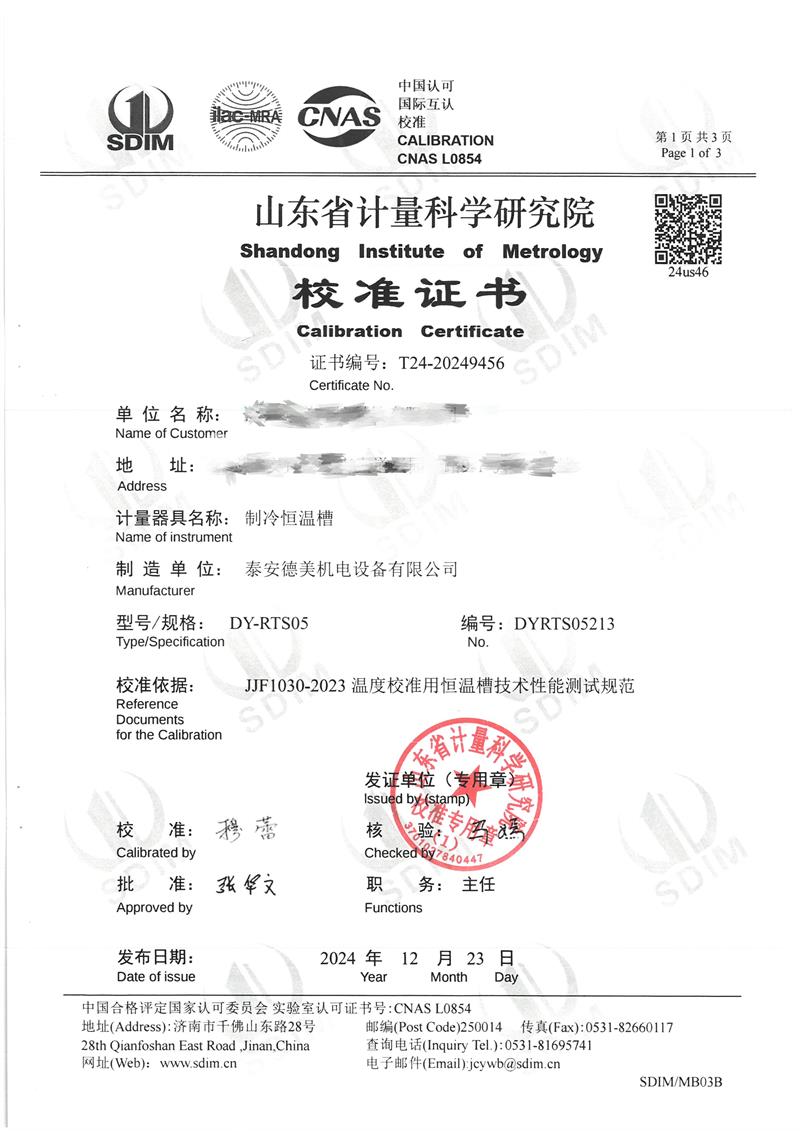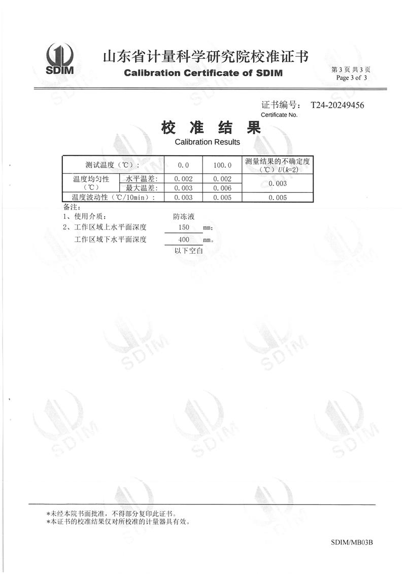 制冷恒溫槽(0~100℃)校準證書 2024-12-26 本文被閱讀 7134 次