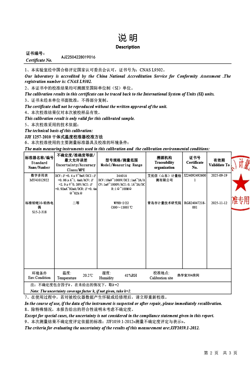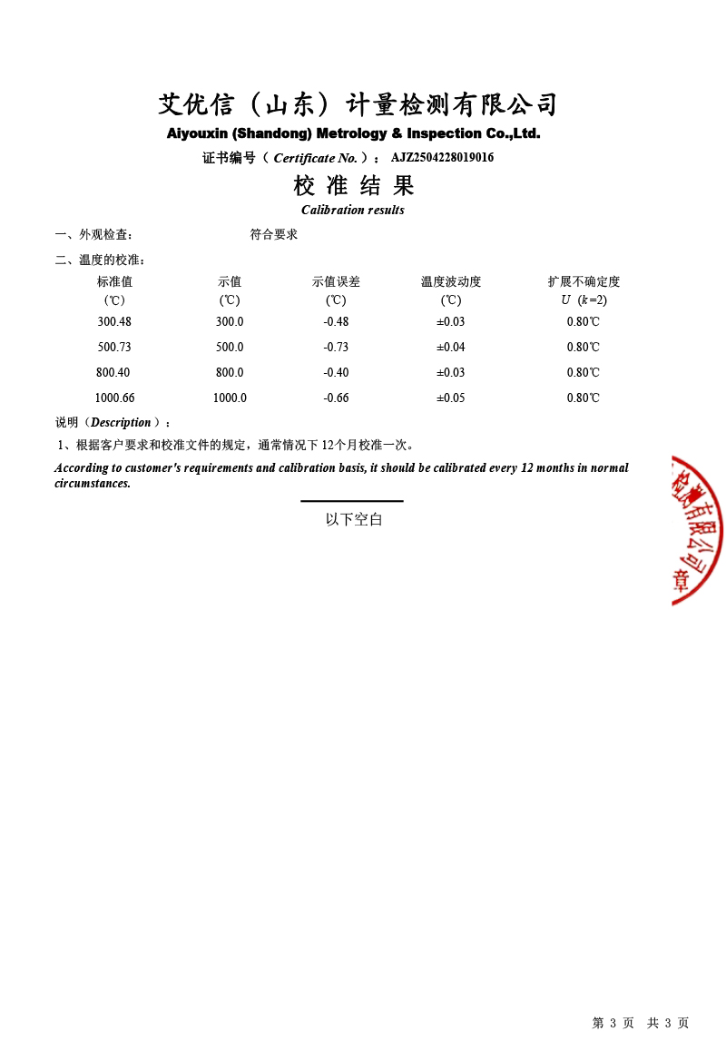 | 上一條:高精度數(shù)字溫度計(jì)(-50-450℃)校準(zhǔn)證書 | 下一條:廉金屬熱電偶檢定爐-校準(zhǔn)證書 |