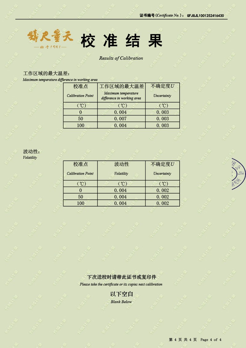 | 上一條:高精度恒溫油槽-校準(zhǔn)證書(shū) | 下一條:廉金屬熱電偶檢定爐-校準(zhǔn)證書(shū) |
