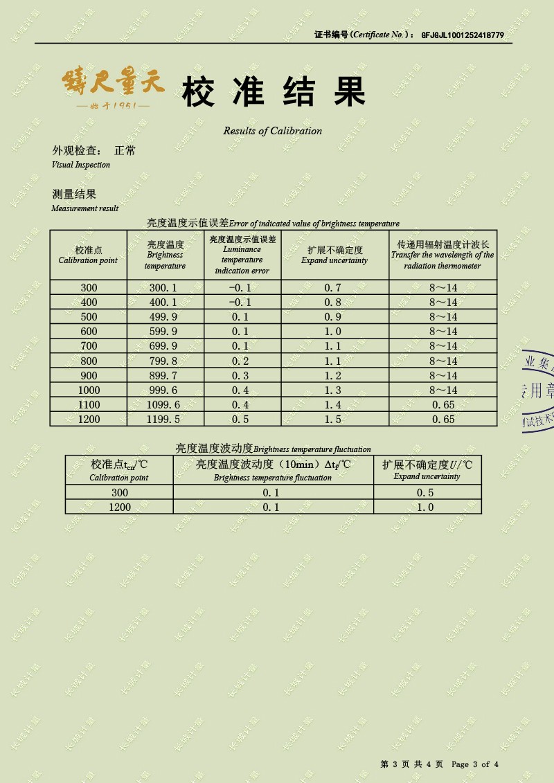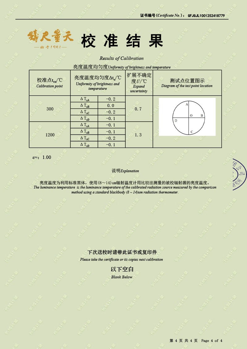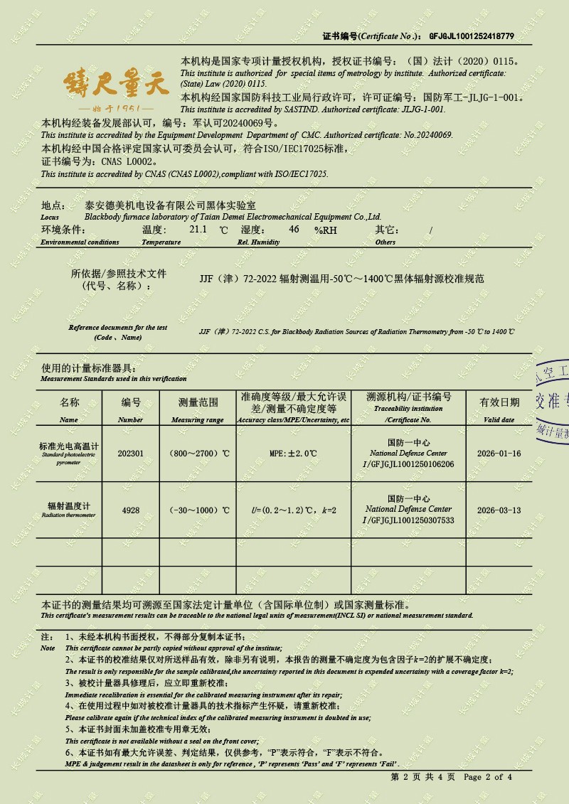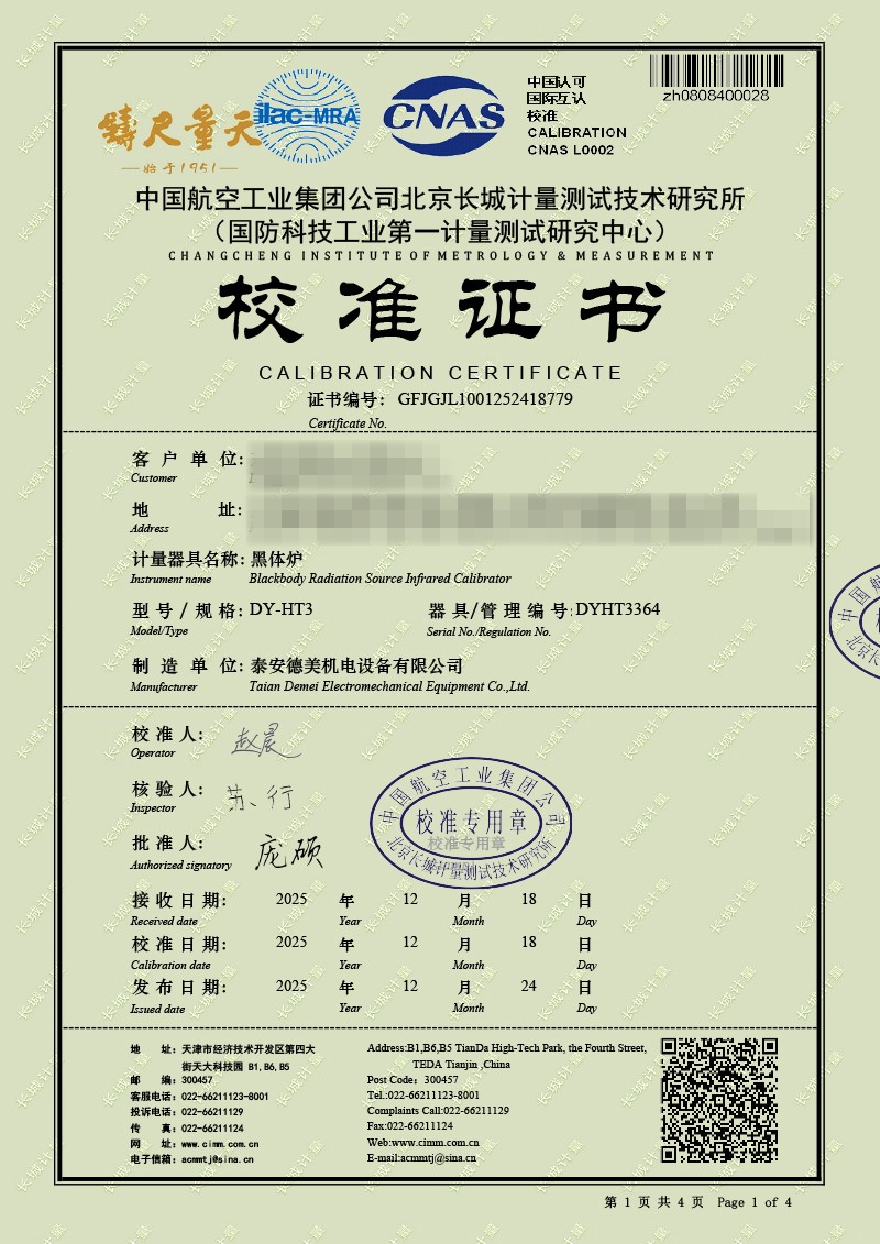 黑體爐DY-HT3校準證書 2026-1-4 本文被閱讀 1140 次