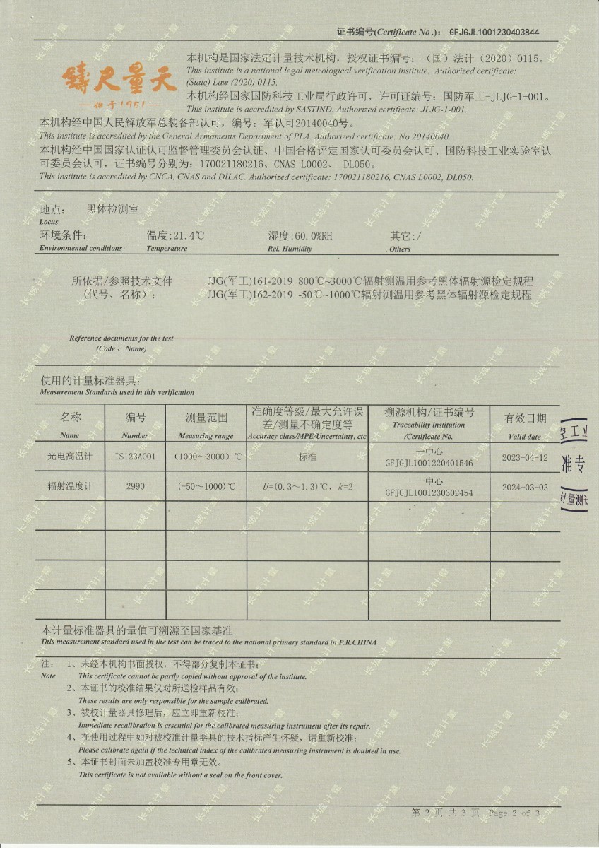 無錫英菲感知技術(shù)有限公司 高溫黑體 校準(zhǔn)證書 (2)