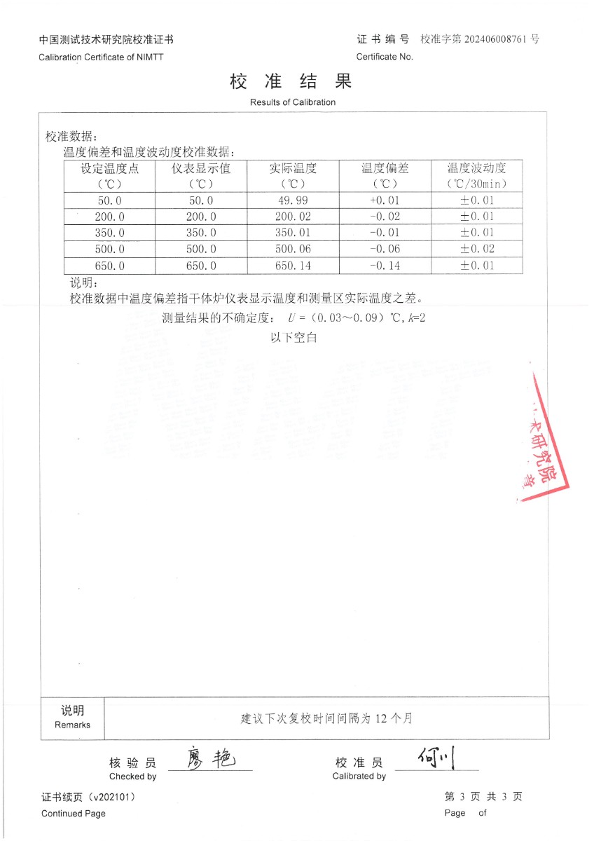 | 上一條:水三相點(diǎn)瓶校準(zhǔn)證書(shū) | 下一條:廉金屬熱電偶檢定爐-校準(zhǔn)證書(shū) |