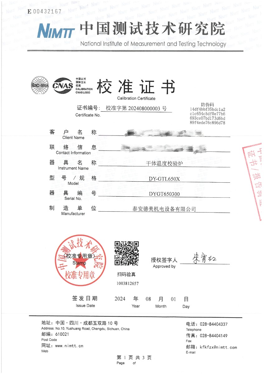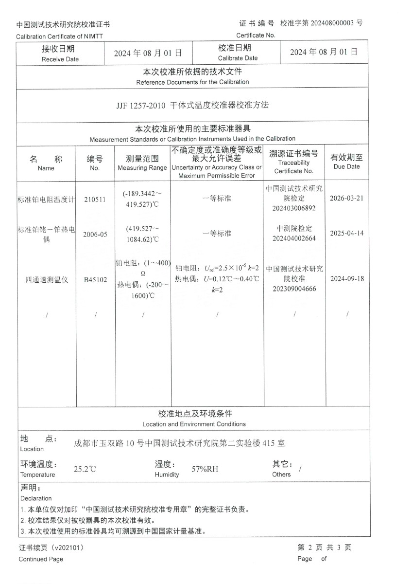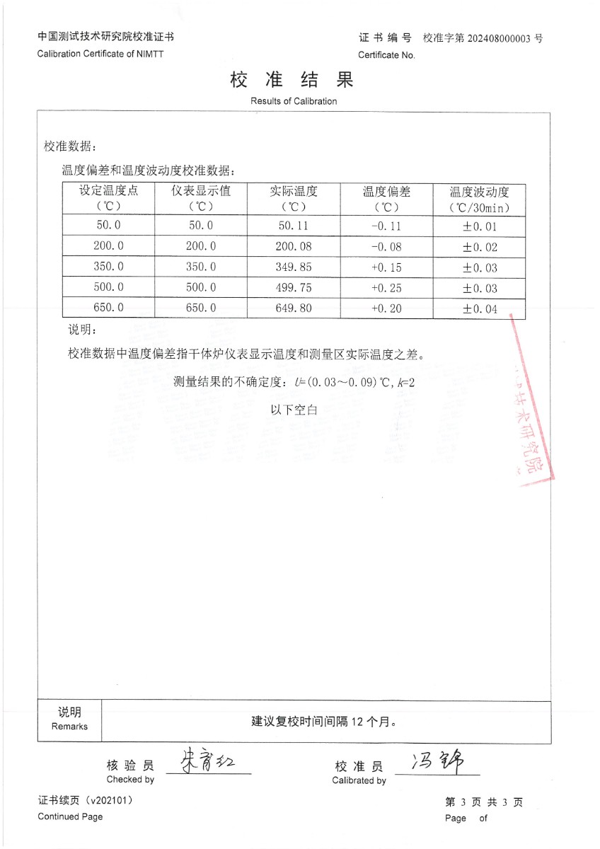 干體爐300(室溫+5℃~650℃)校準證書 2024-8-5 本文被閱讀 7453 次
