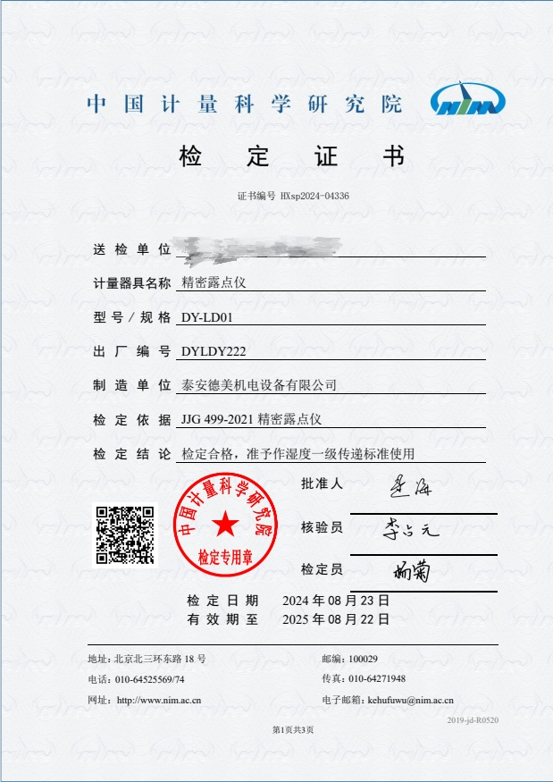 露點儀檢定證書 2024-9-3 本文被閱讀 7091 次