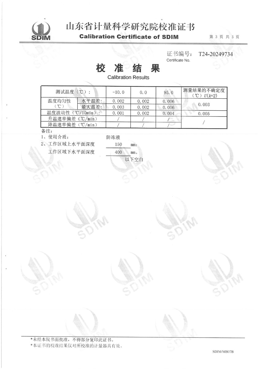 | 上一條:高精度恒溫油槽(70~300)℃校準(zhǔn)證書 | 下一條:廉金屬熱電偶檢定爐-校準(zhǔn)證書 |