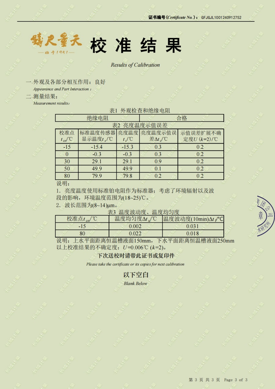 浴式黑體(-15-80℃)校準(zhǔn)證書