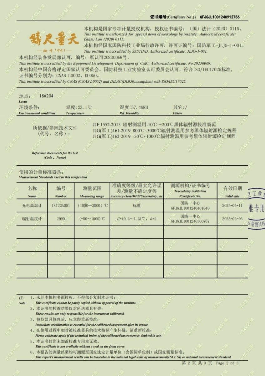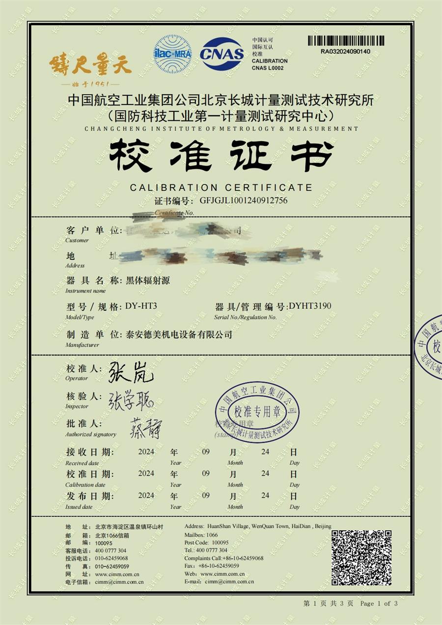 黑體輻射源(50-1200℃)校準(zhǔn)證書 2024-10-17 本文被閱讀 6537 次