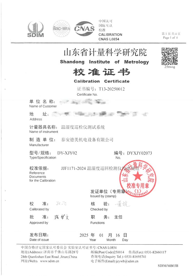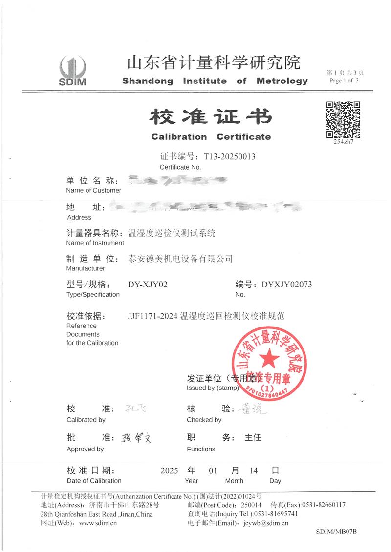 溫濕度巡檢儀測(cè)試系統(tǒng)校準(zhǔn)證書 2025-1-20 本文被閱讀 6667 次