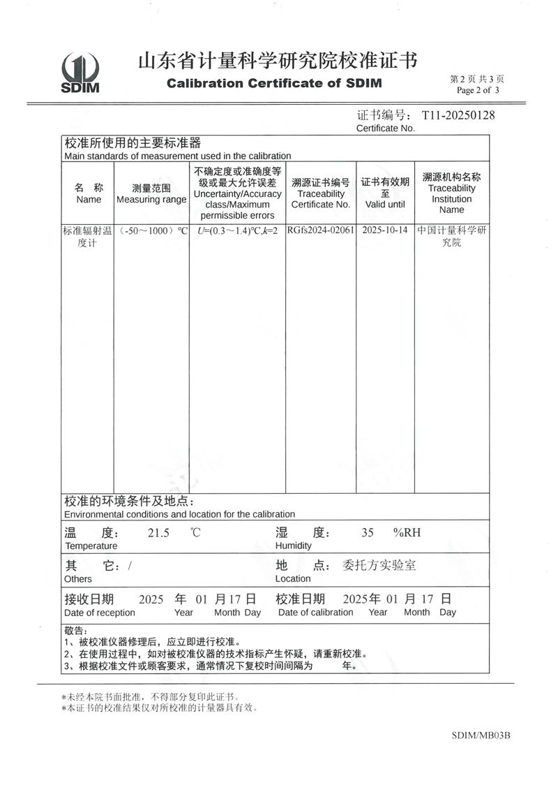 | 上一條:表面溫度計校準(zhǔn)裝置(室溫+5℃~400℃)校準(zhǔn)證書 | 下一條:廉金屬熱電偶檢定爐-校準(zhǔn)證書 |