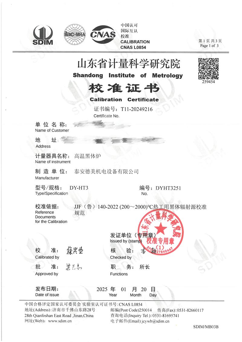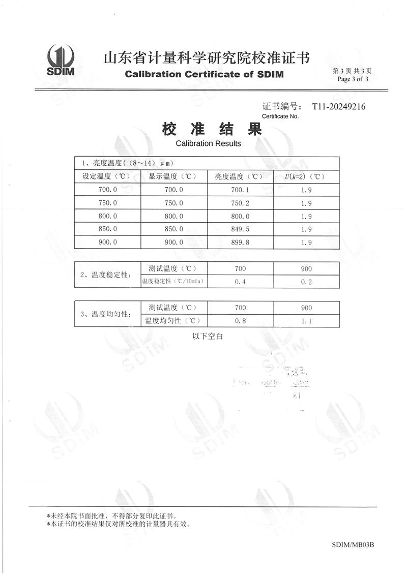 高溫黑體爐(300℃~1200℃)校準(zhǔn)證書