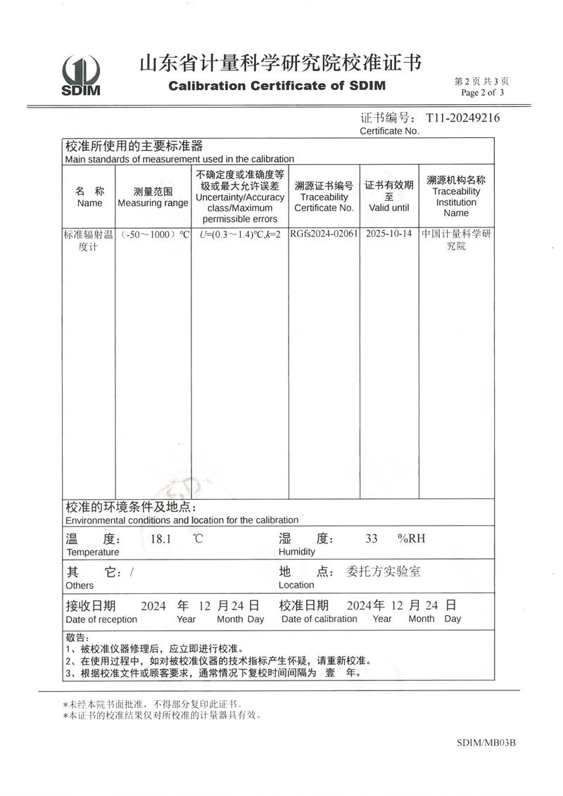 高溫黑體爐(300℃~1200℃)校準(zhǔn)證書 2025-1-25 本文被閱讀 8029 次