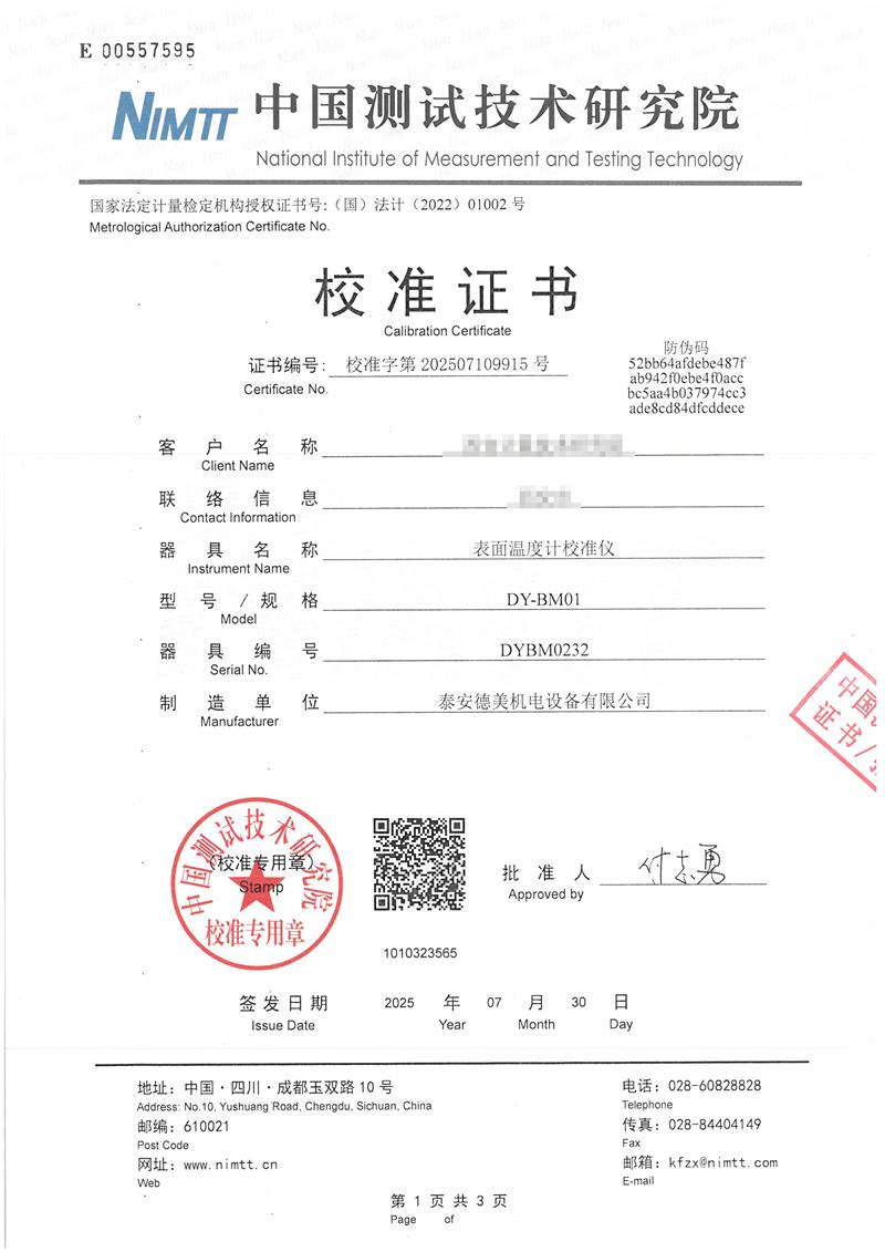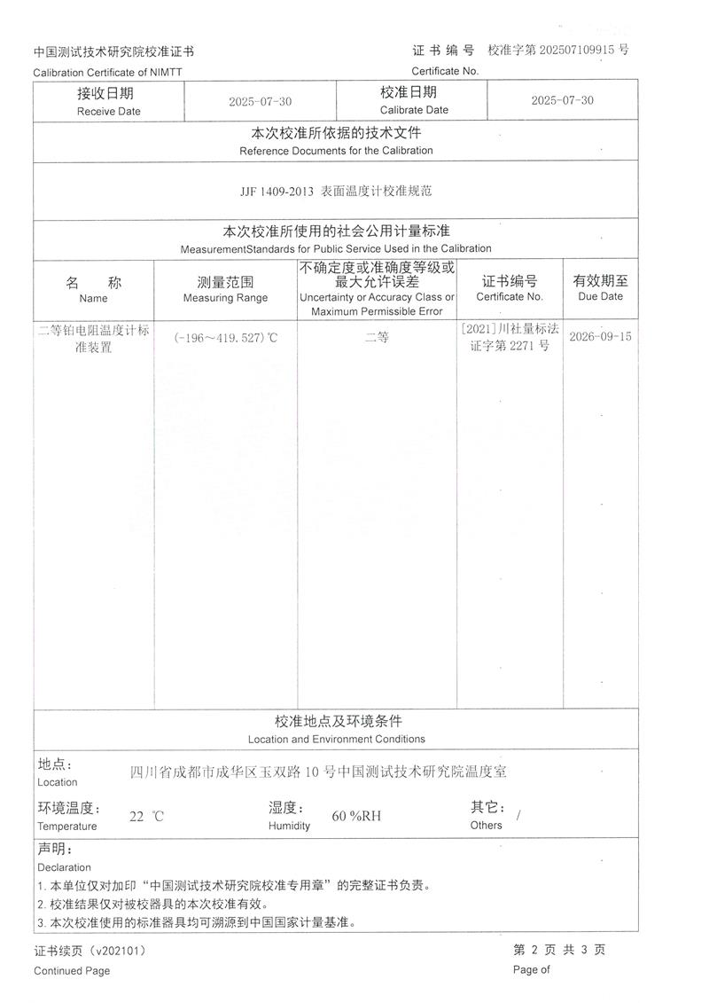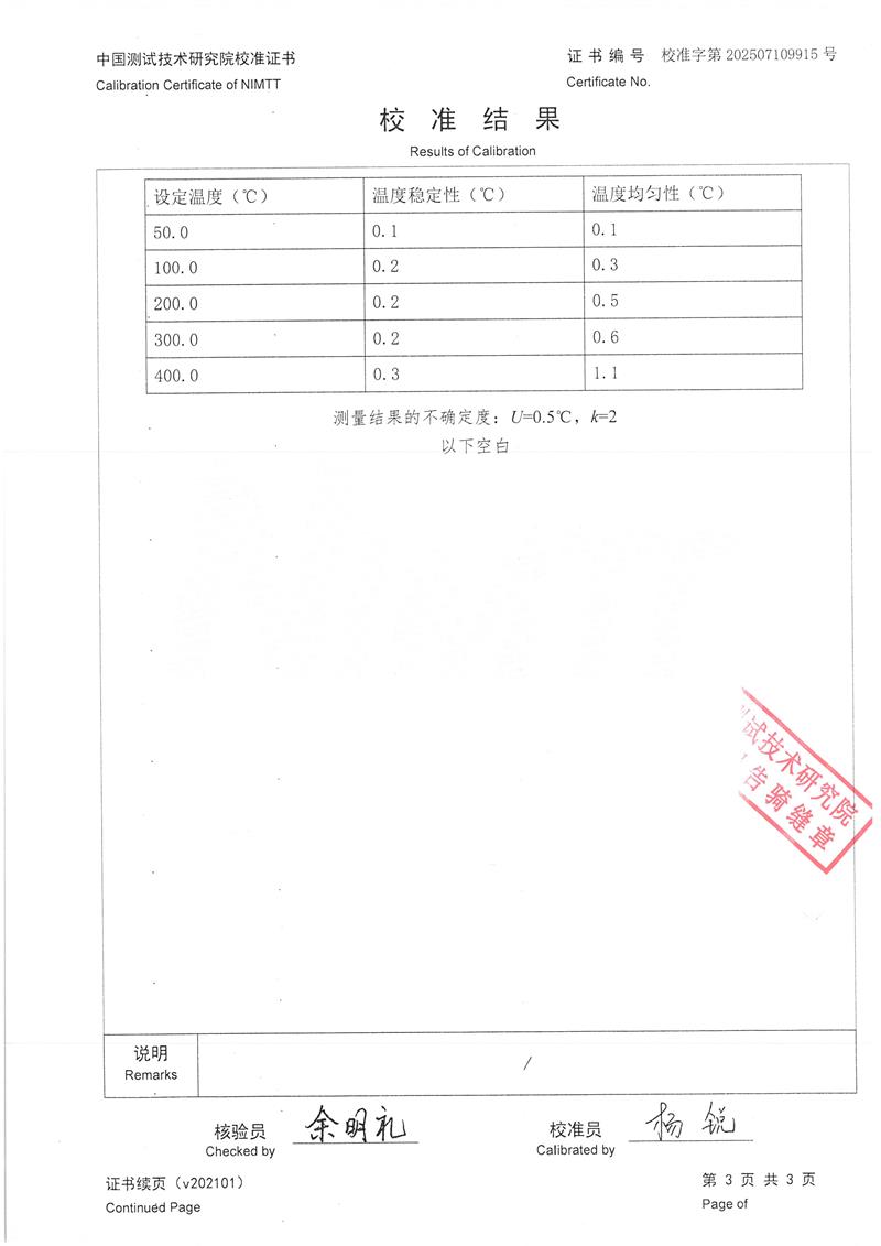 | 上一條:高精度低溫黑體(-10-100℃)校準(zhǔn)證書 | 下一條:廉金屬熱電偶檢定爐-校準(zhǔn)證書 |