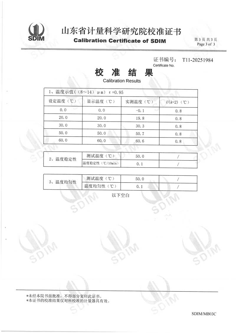 黑體輻射源(0-60°C)校準(zhǔn)證書