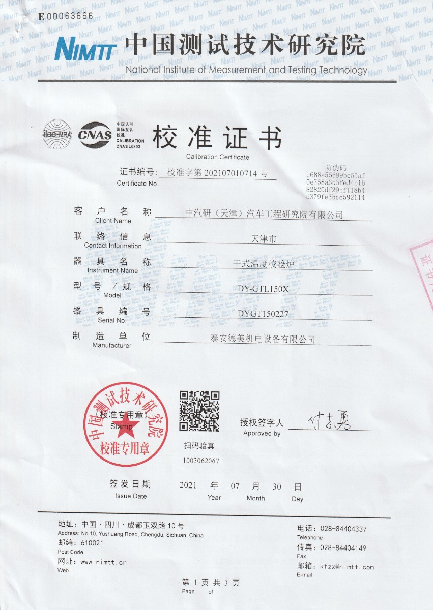 中汽研(天津)汽車工程研究院有限公司-干式溫度校驗爐 2021-8-6 本文被閱讀 21996 次