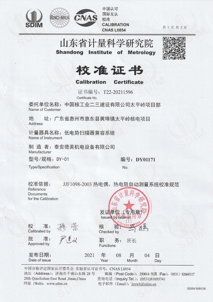 | 上一條:DY-HTM面源黑體爐,輻射面100mm(-20℃~600℃) | 下一條:廉金屬熱電偶檢定爐-校準(zhǔn)證書 |