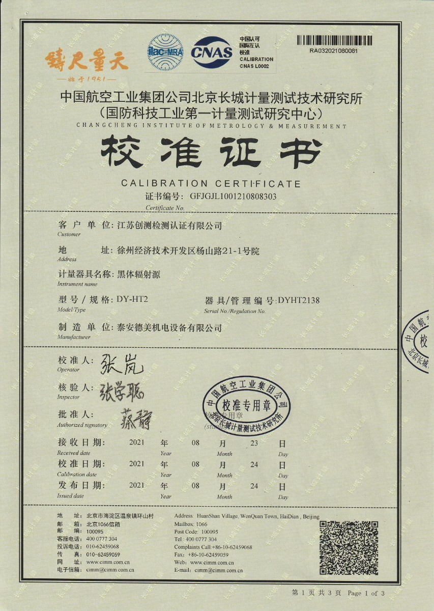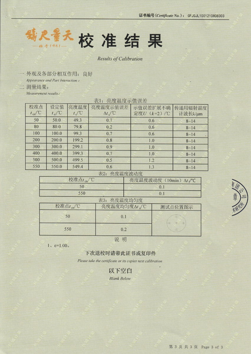 | 上一條:大秦鐵路股份有限公司太原車(chē)輛段-黑體爐 | 下一條:廉金屬熱電偶檢定爐-校準(zhǔn)證書(shū) |