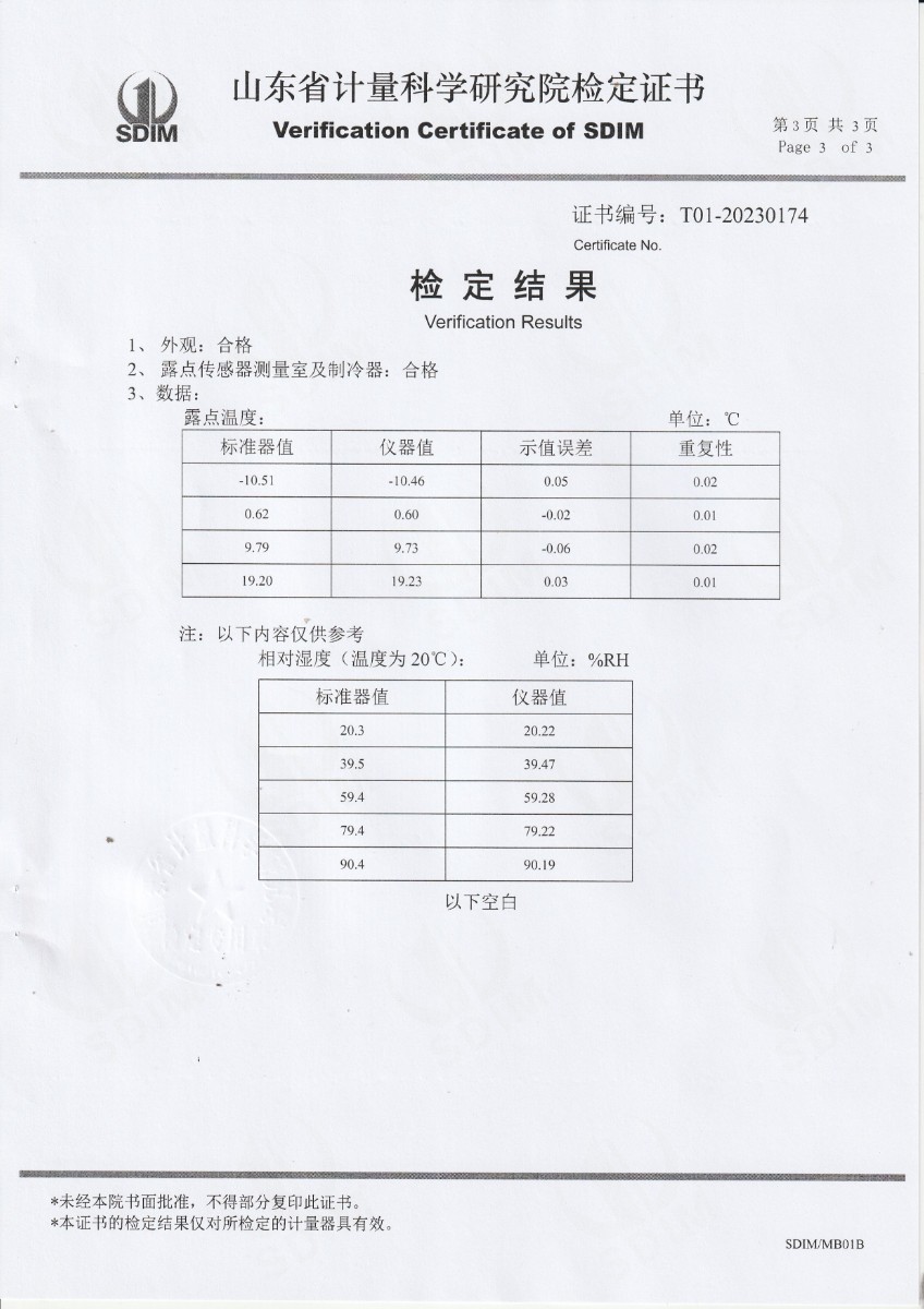冷鏡式露點儀檢定證書 2023-12-13 本文被閱讀 10002 次