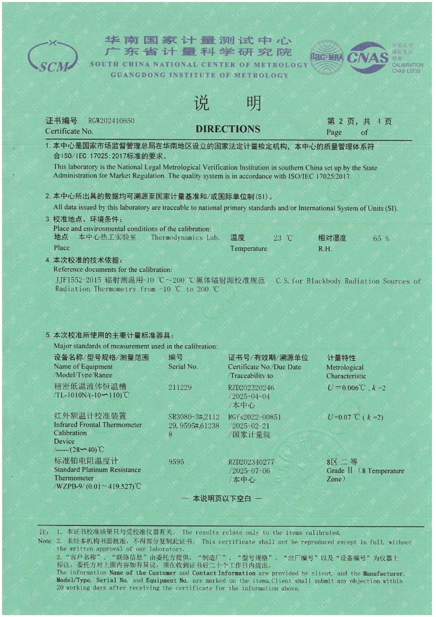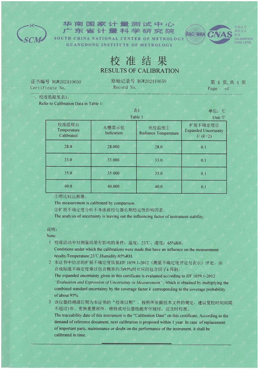 額溫空腔(黑體輻射源)校準證書 2024-5-27 本文被閱讀 6921 次