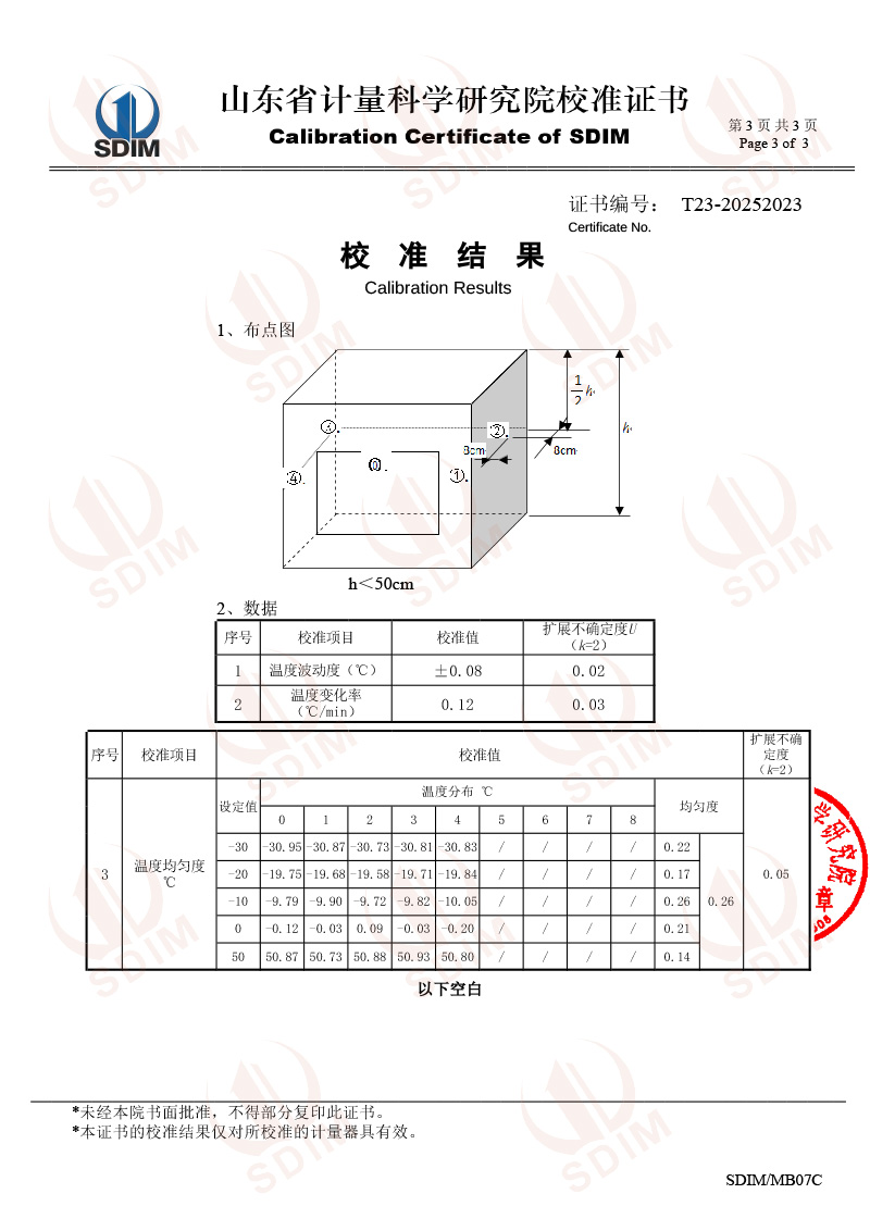 便攜溫度檢定箱(-30℃~50℃)校準(zhǔn)證書