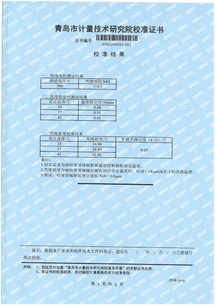 耳溫計黑體空腔校準證書 2025-3-25 本文被閱讀 5211 次