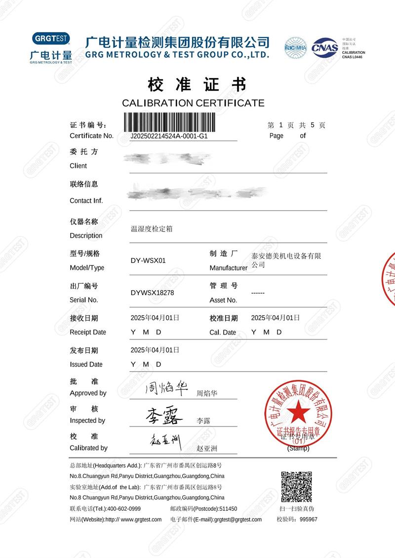 溫濕度檢定箱18278(-5~65℃)校準證書 2025-4-18 本文被閱讀 4327 次