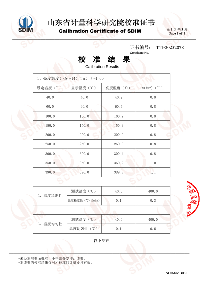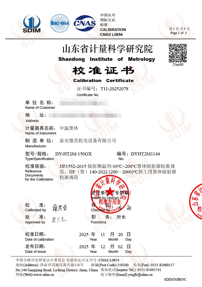 中溫黑體校準(zhǔn)證書(shū)