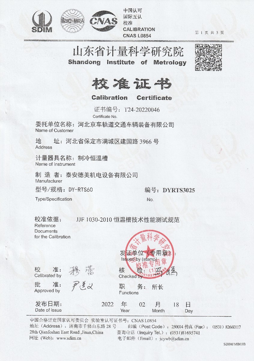 河北京車軌道交通車輛裝備有限公司-制冷恒溫槽 2022-2-28 本文被閱讀 14563 次