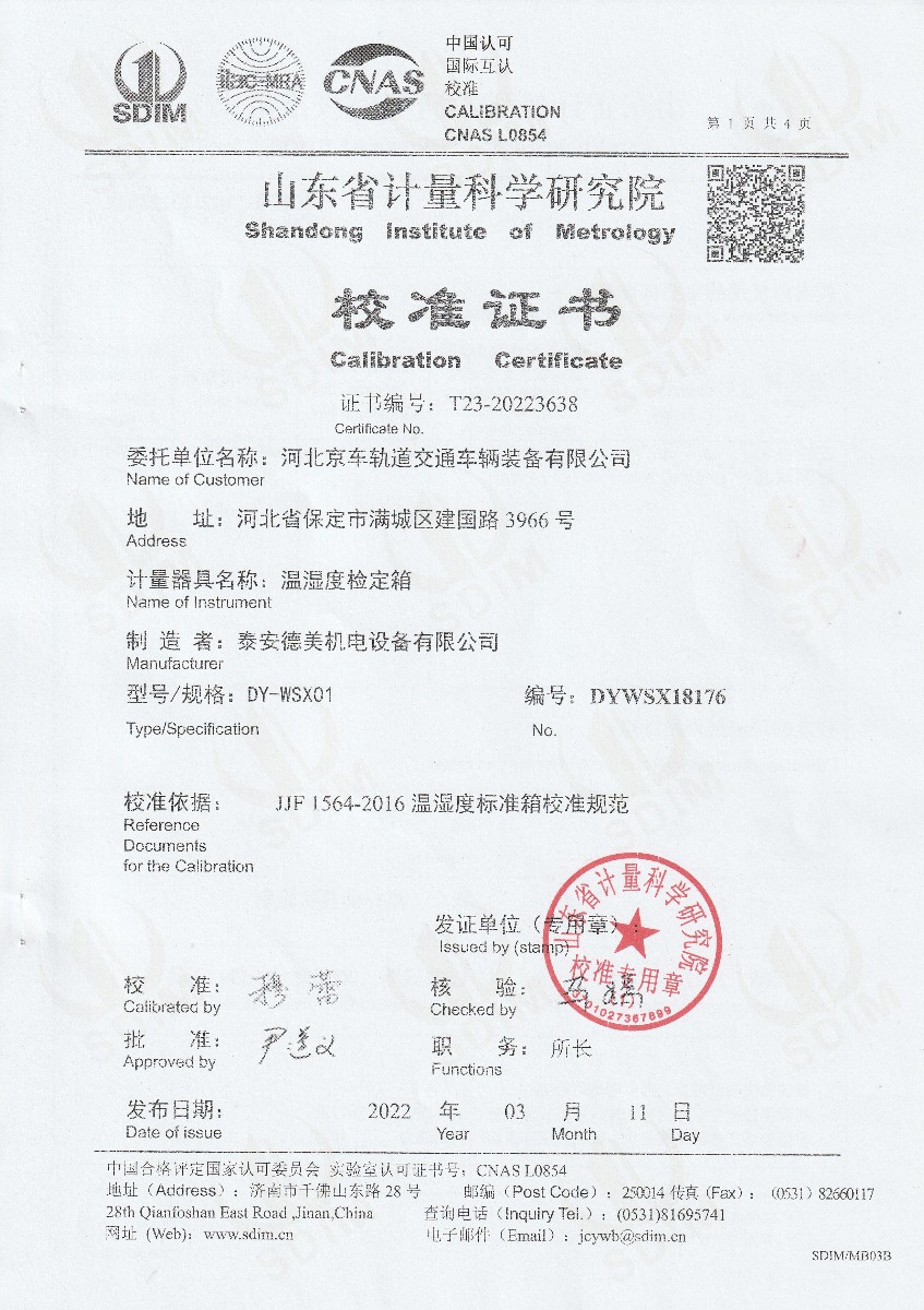 河北京車軌道交通車輛裝備有限公司-溫濕度檢定箱 2022-3-18 本文被閱讀 14822 次