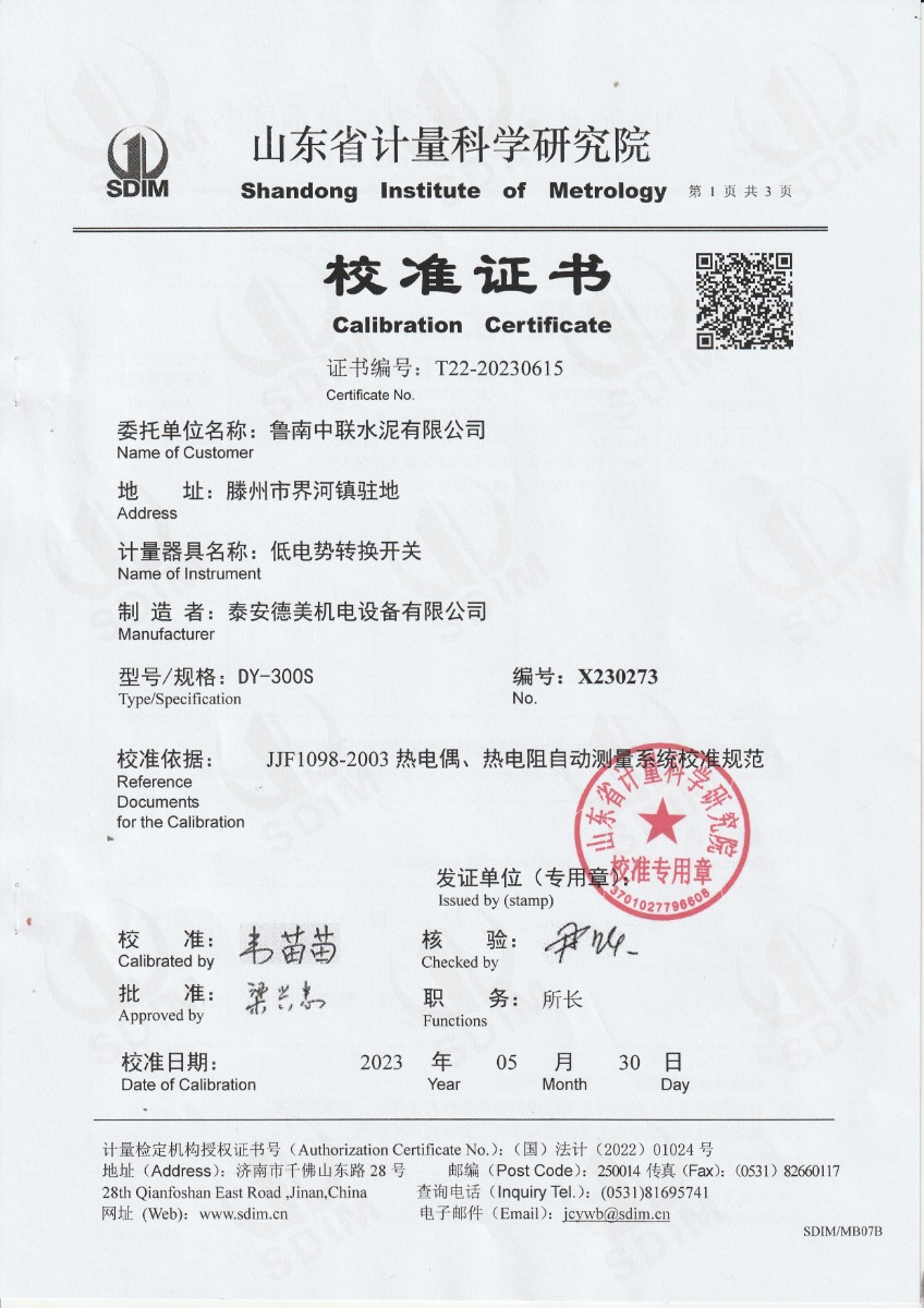 | 上一條:西安機(jī)電信息技術(shù)研究所 面源黑體校準(zhǔn)證書(shū) | 下一條:廉金屬熱電偶檢定爐-校準(zhǔn)證書(shū) |