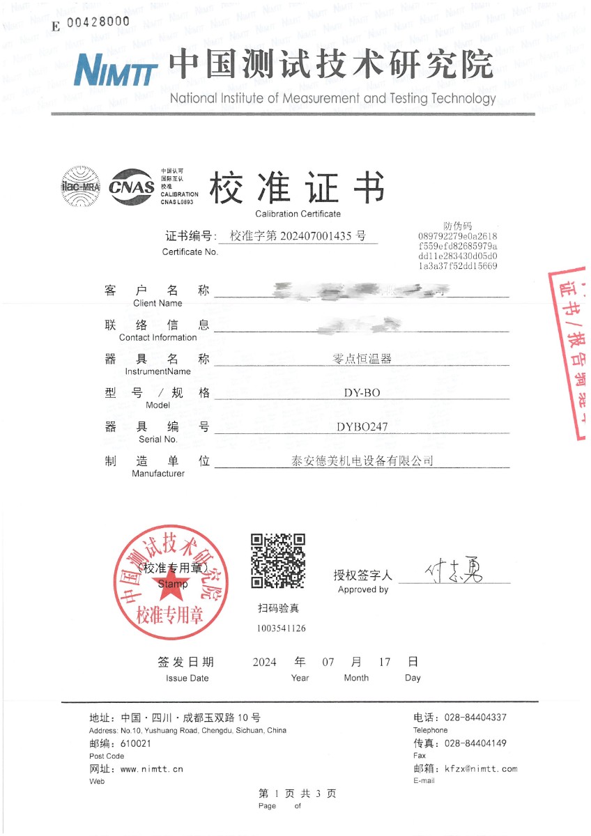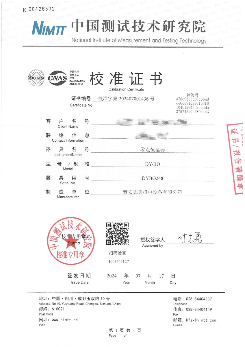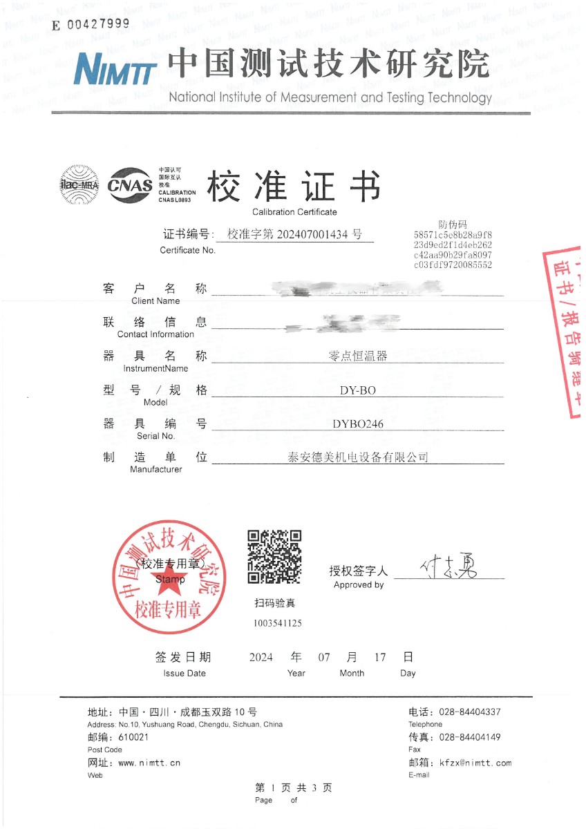 零點(diǎn)恒溫器校準(zhǔn)證書 2024-7-19 本文被閱讀 7589 次